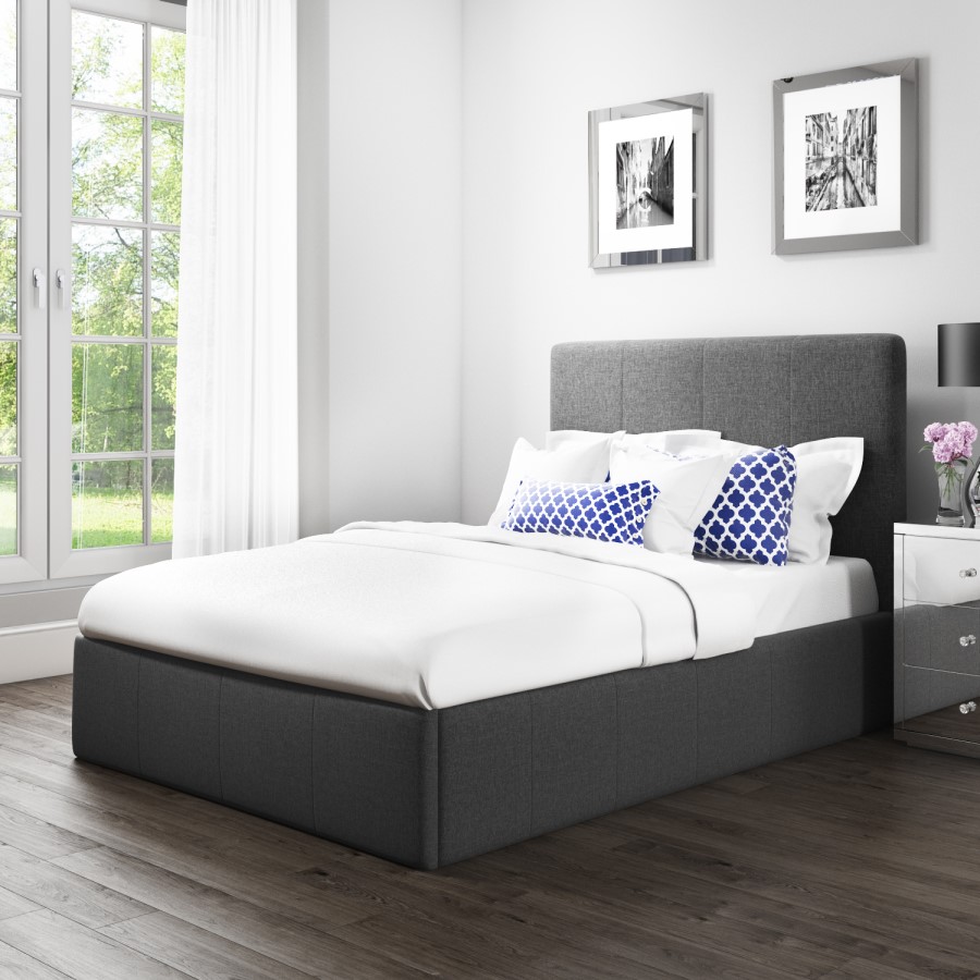It has a clean and contemporary design, with a neutral charcoal grey finish, which means it fits beautifully with many décor styles. The tall padded headboard makes the bed into a feature piece, whilst adding comfort. The bed frame has been made from a tough combination of metal and wood, with a sprung slatted bed base that offers comfortable and durable mattress support. Complete with a padded and upholstered finish in stylish charcoal grey.