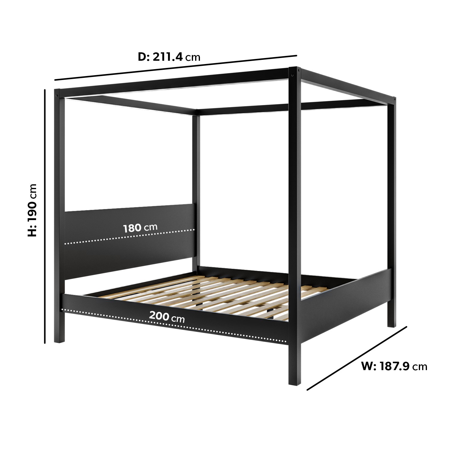 - Assembled product dimensions: W187.9 x H190 x L211.4 cm