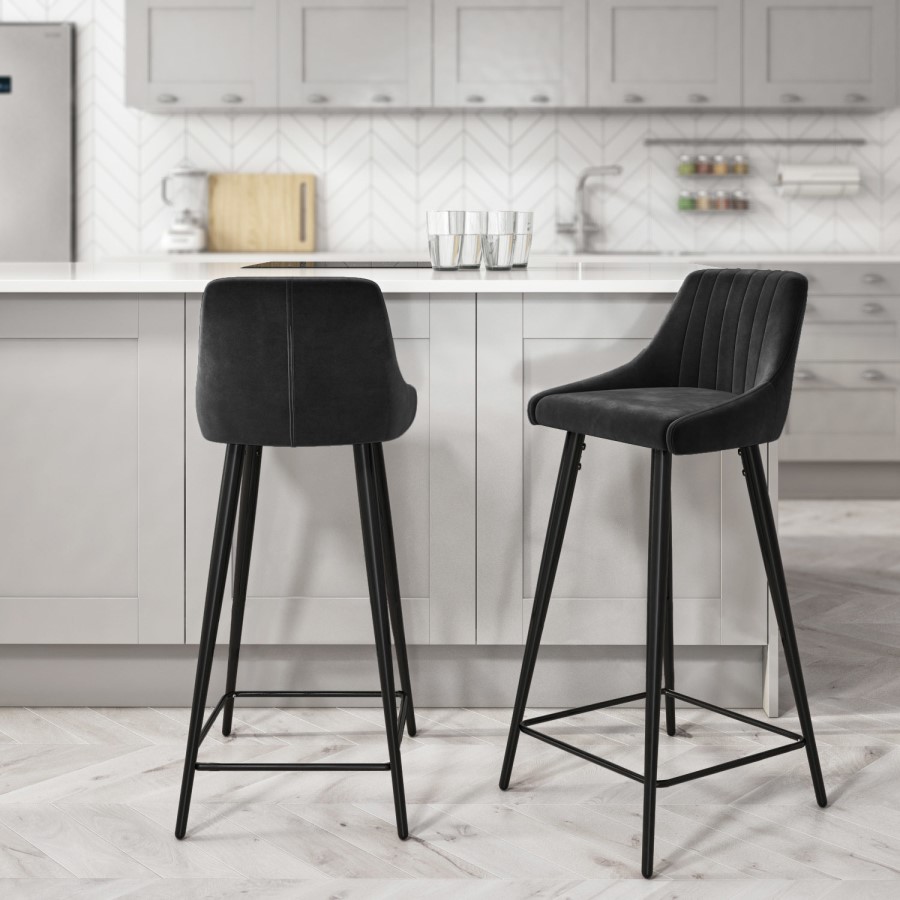 It’s easy to fall in love with the Macie stool for kitchen island; the stylish design is made from plush soft velvet and finished with the chic black powder-coated legs and footrest. The ribbed back adds to the chicness of the stool.