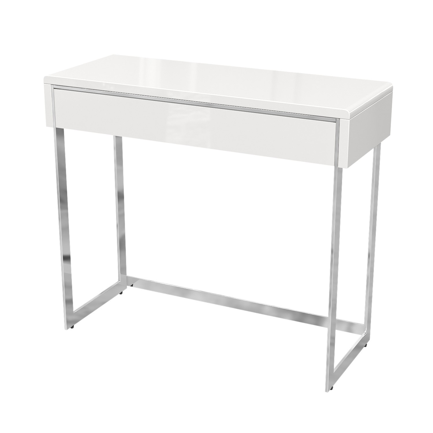 - White gloss console table finished with curved edges