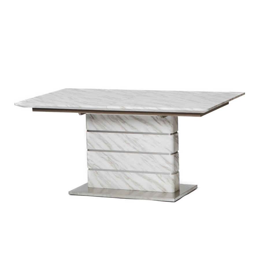 The Etan marble effect extendable dining table is the perfect table for entertaining. It features a durable, heat, scratch and stain resistant table top which is a must for today's busy homes. It has an easy glide mechanism making opening the butterfly extension very easy.