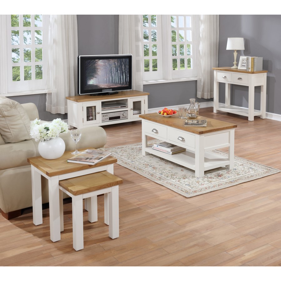 - Stylish combination of rich solid oak & soft cream