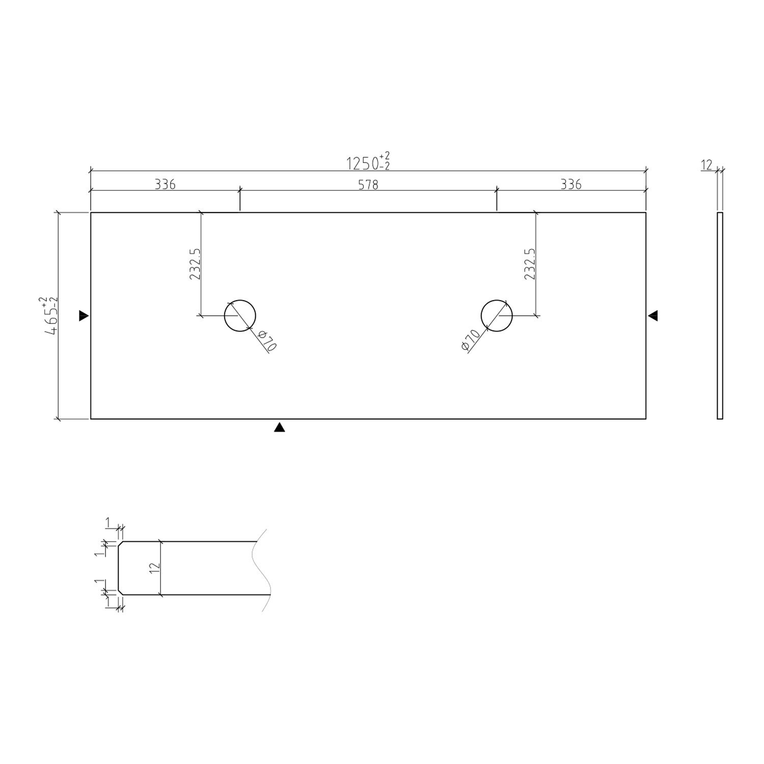 - Worktop Dimensions: W1250 x D465 x H12mm