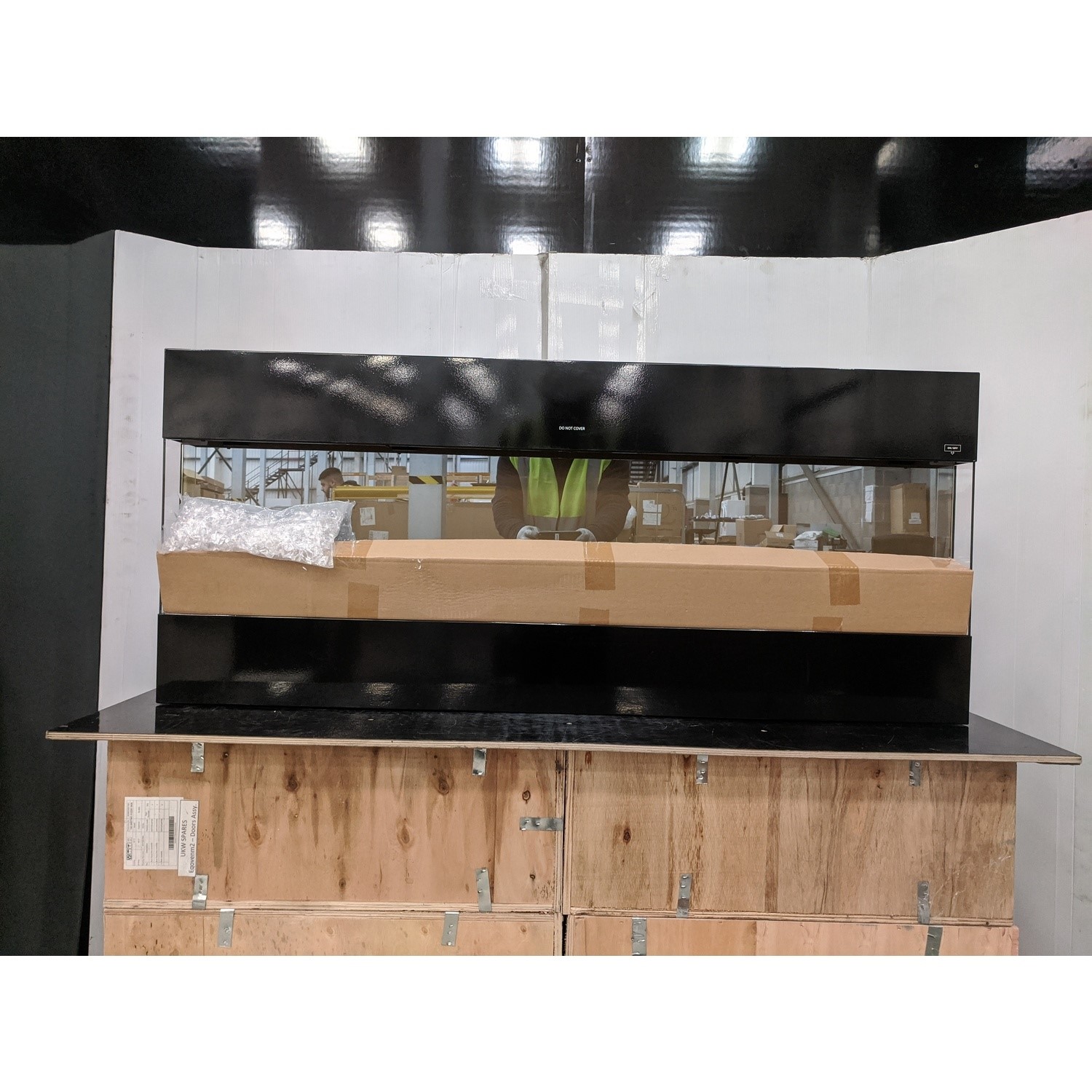 The AmberGlo 50 Inch Black Built In Electric Fire have some minor cosmetic damage. It has been repaired, had a faulty component fixed. This will not stop the product from functioning. Please see the images for more information.