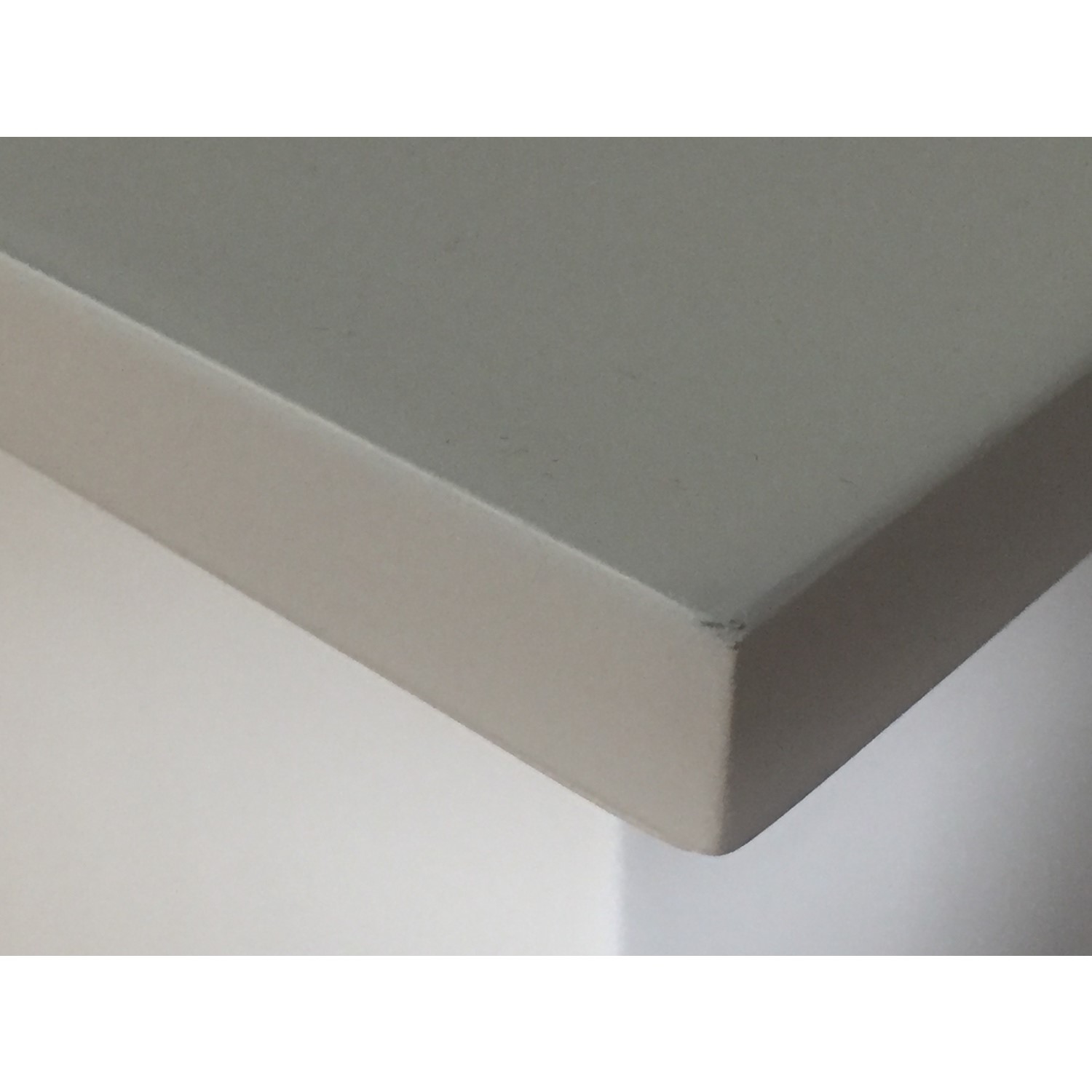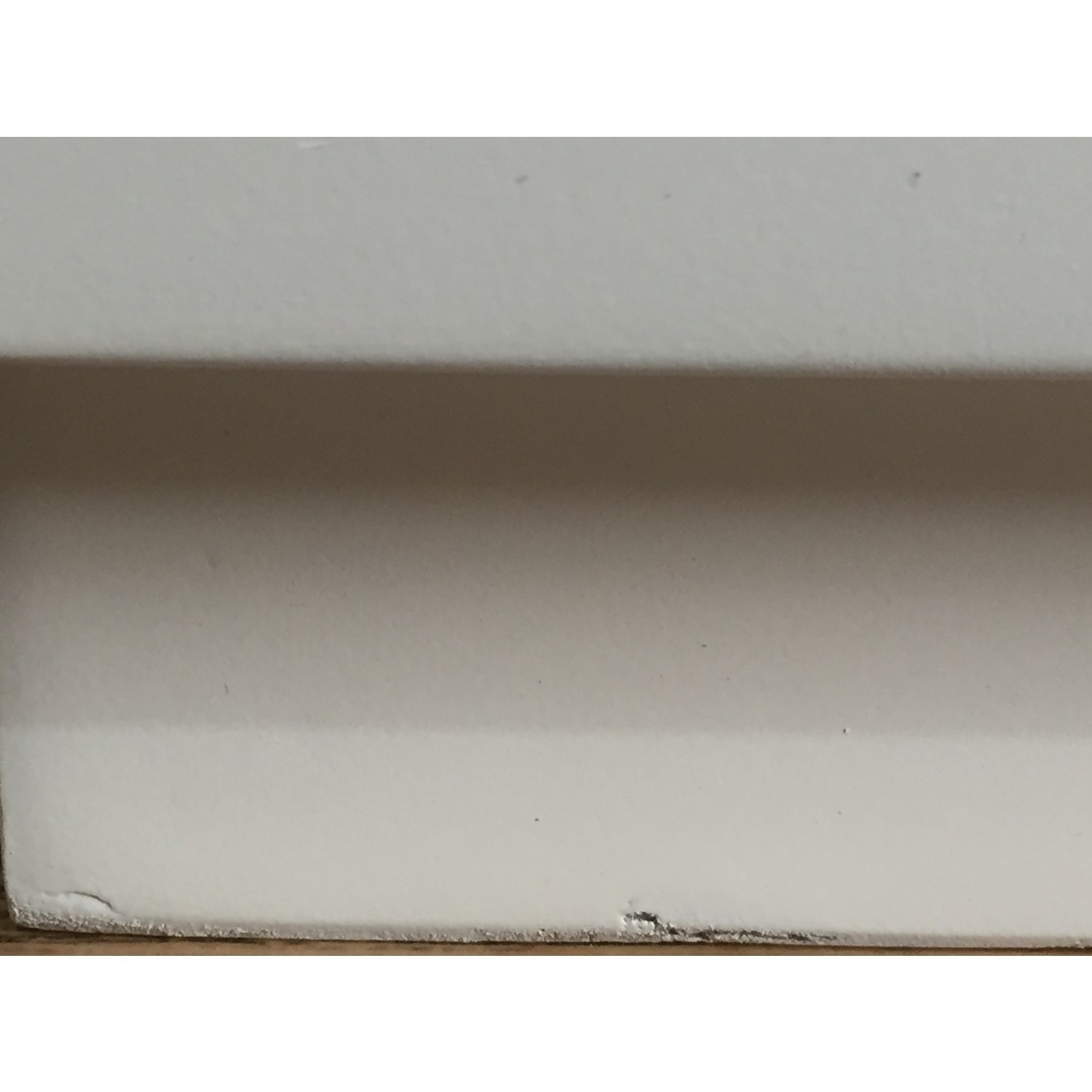 - Wall fireplace suite includes an inset electric fireplace and modern white surround