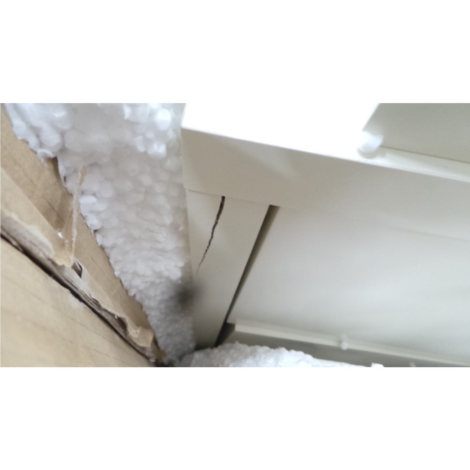 The Desk has some visible cosmetic damage. There is a crack to the side of the drawers which is noticeable. The damage does not affect the stability of the Desk. Please see images for more information.