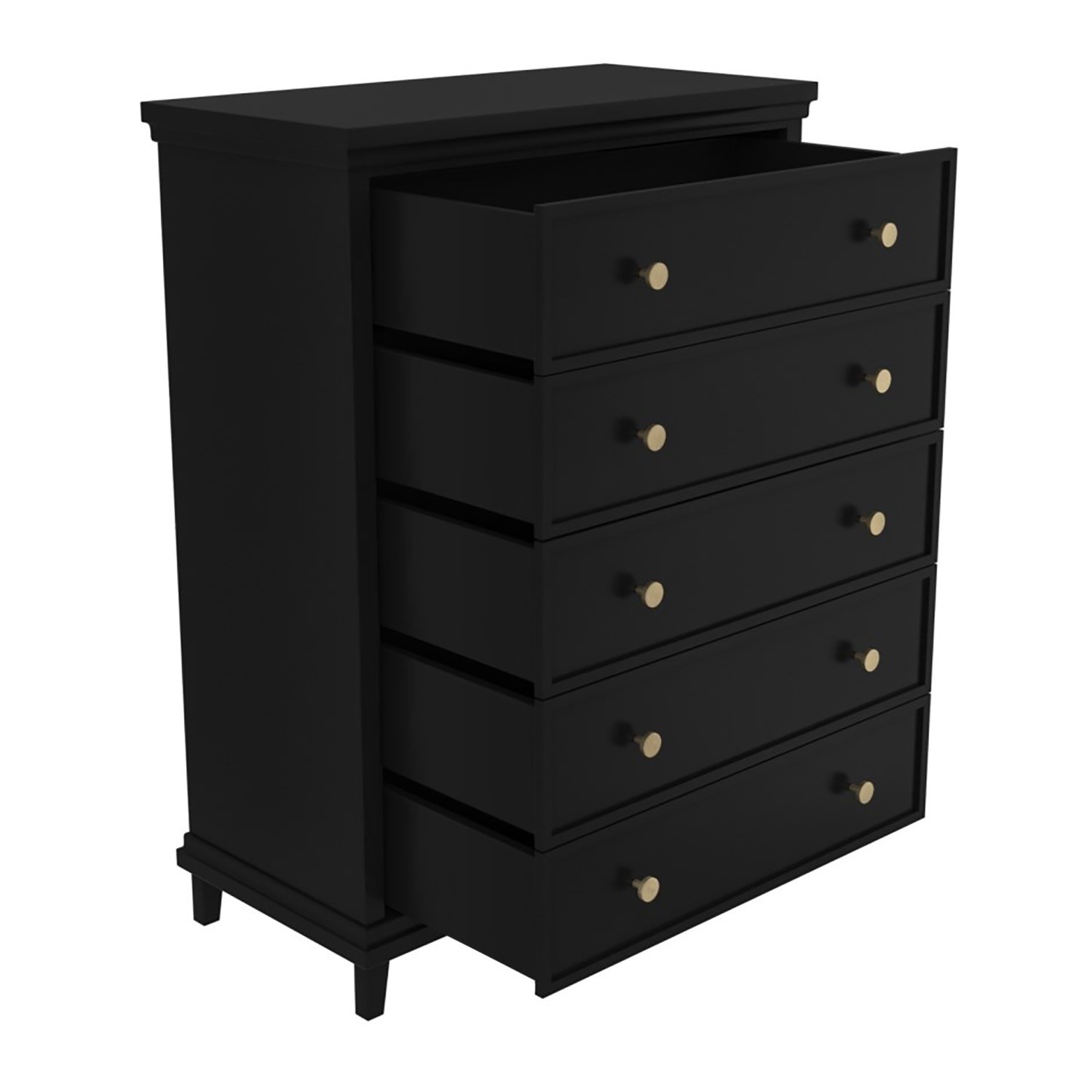 The Georgia Black 5 Drawer Tall Chest of Drawers have some minor cosmetic damage. The legs has been repaired. This will not stop the product from functioning. Please see the images for more information.