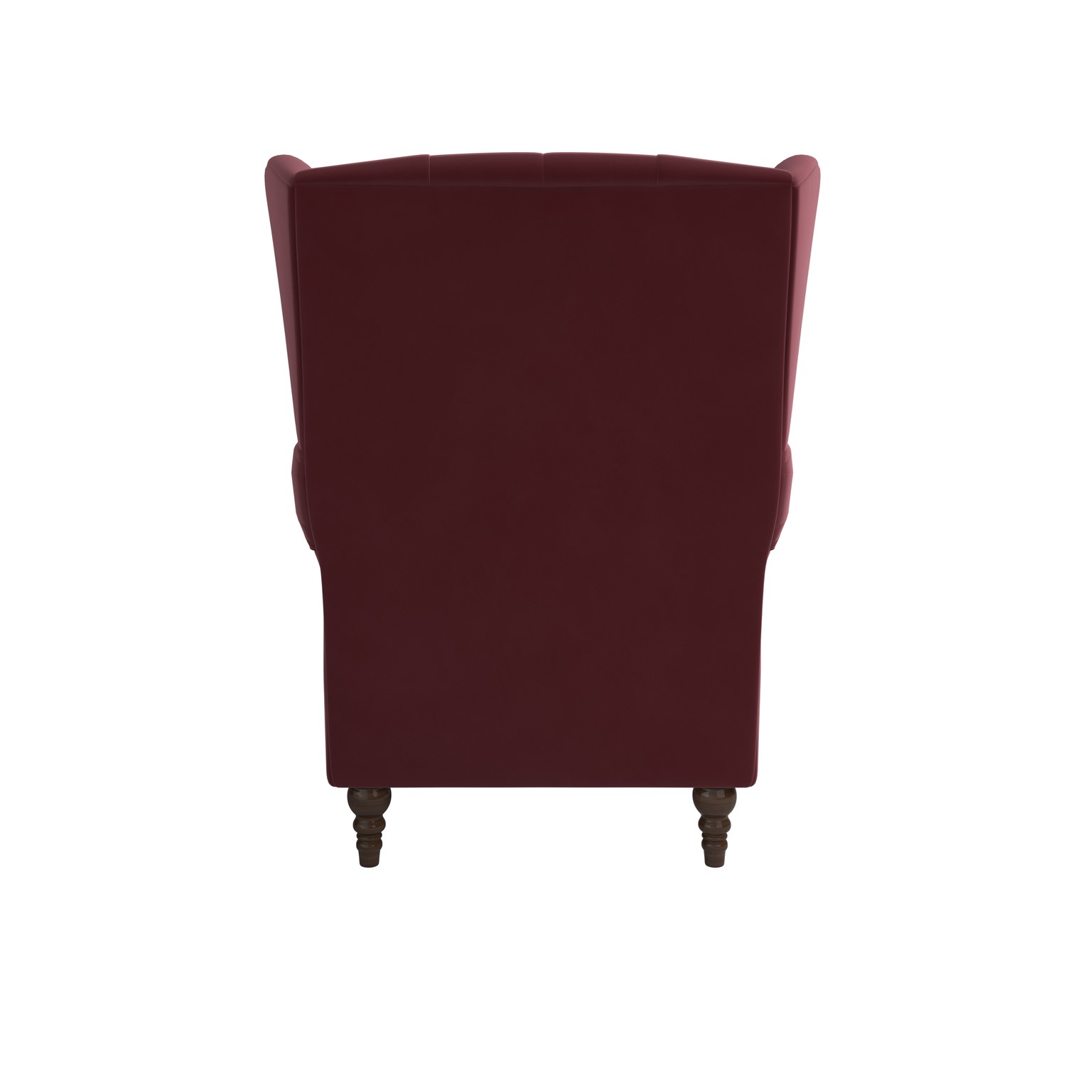 Traditional elegance: Upholstered in luxuriously soft burgundy velvet fabric, it features a wingback design, deep button tufting, and scroll arms for a timeless Chesterfield-inspired look.