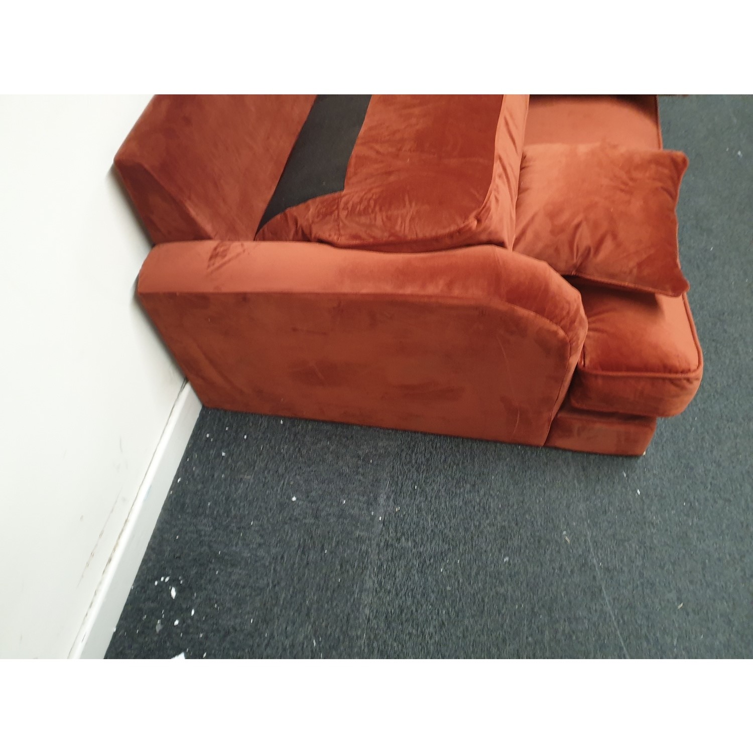 The Payton Burnt Orange Velvet Loveseat have some minor cosmetic damage. The underside fabric ripped has been repaired. This will not stop the product from functioning. Please see the images for more information.