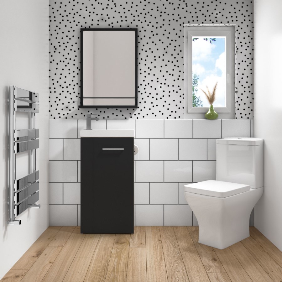 This unique style bathroom bundle comes with everything you need to achieve a cool and contemporary cloakroom suite. The Virgo Vanity features a handy built-in toilet roll holder and has one tap hole located to the left, the tap isn’t included, so you’re free to choose the mixer tap of your choice.