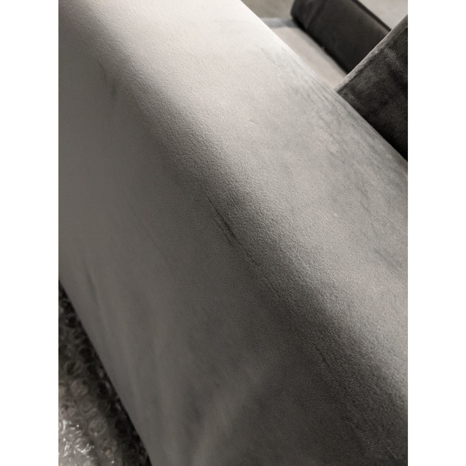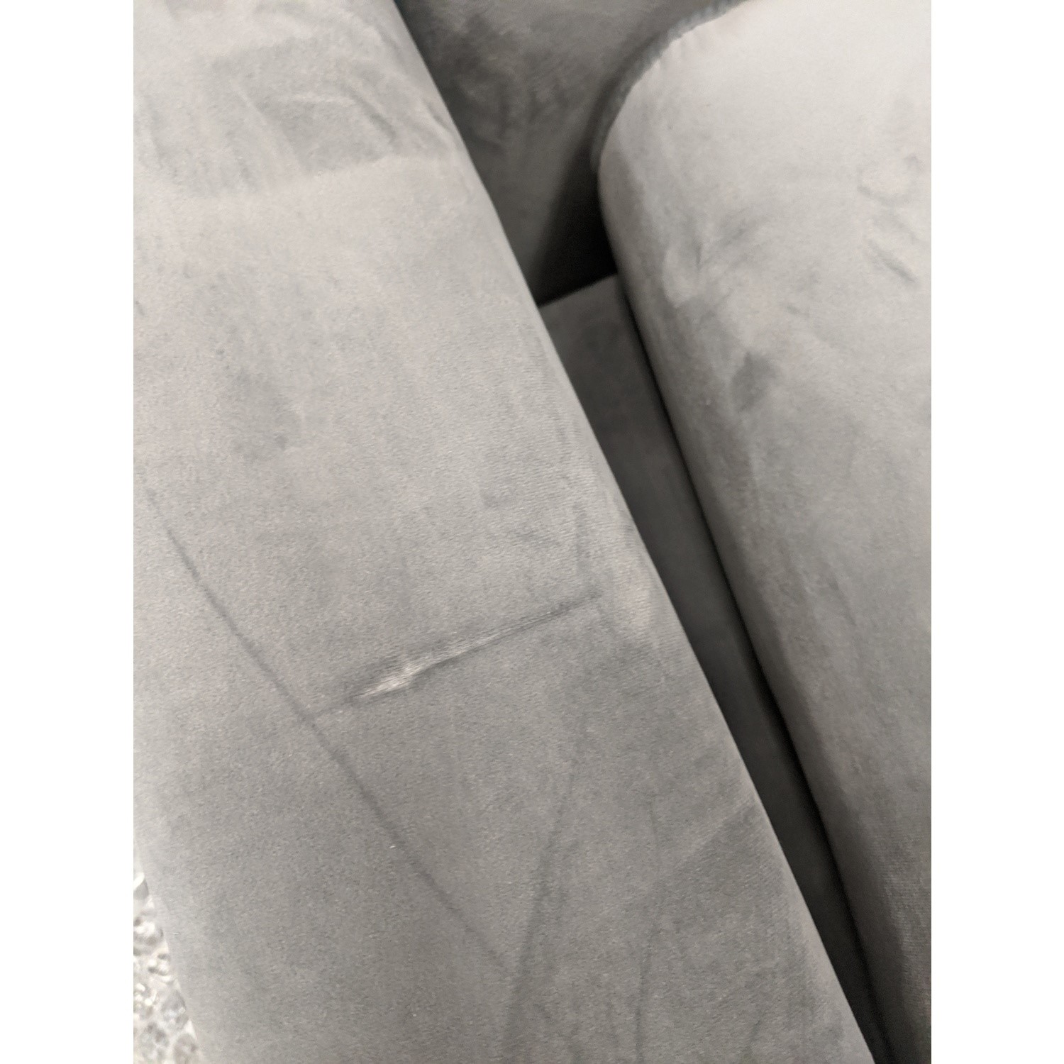 The Idris Sofa has some minor cosmetic damages. There is some scuffs in the velvet on the arm, backrest and on either end of the sofa . This will not stop the product from functioning. Please see the images for more information.