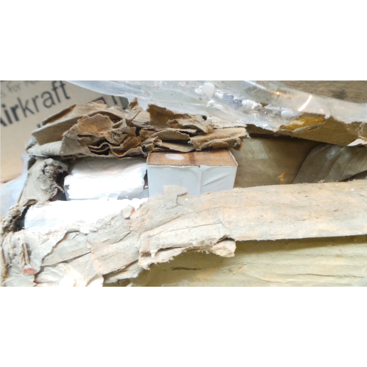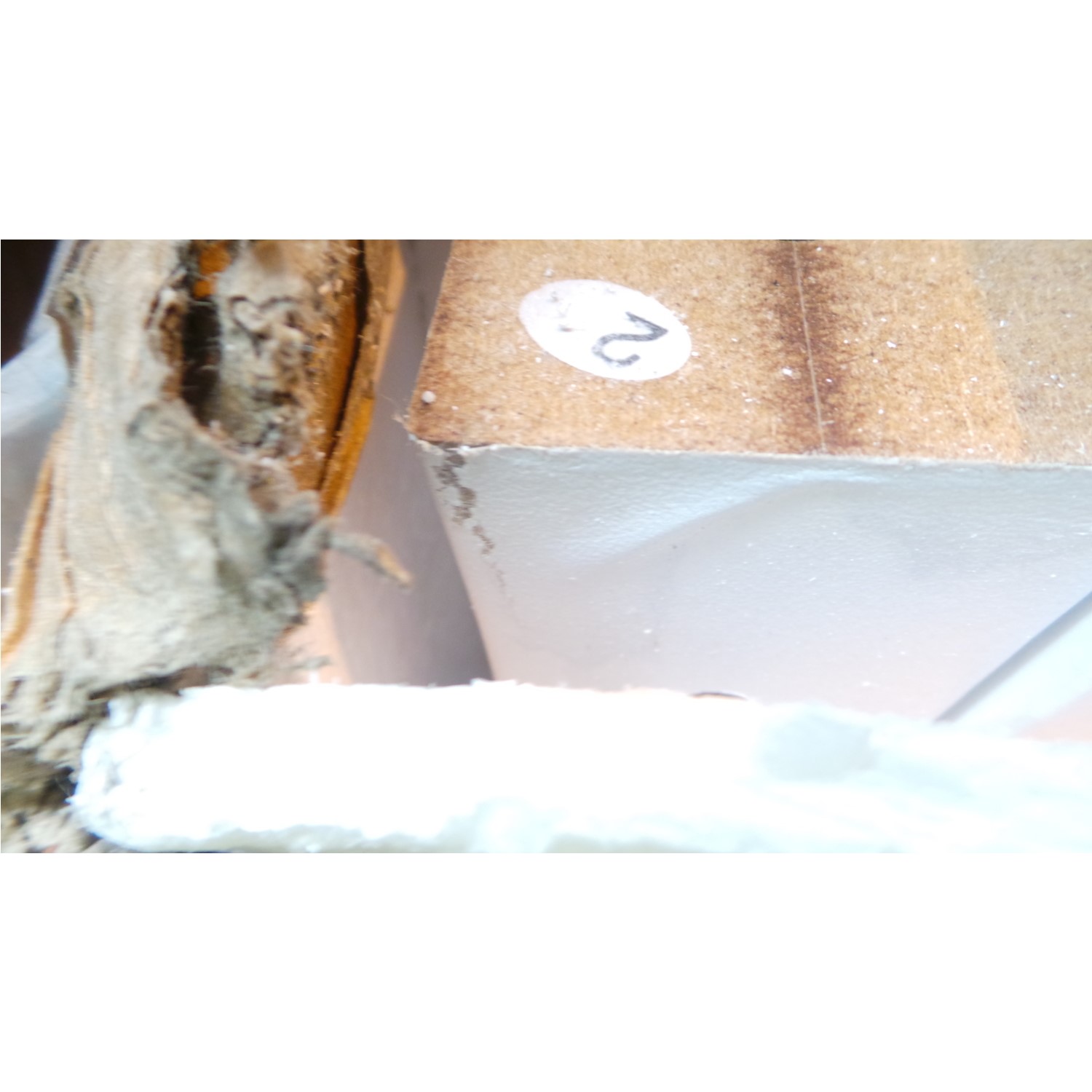 The Bed has some minor cosmetic damage. There is only damage to one of the 4 boxes. It has damage to corners of the pieces which where the white finish has started to lift. Please see images for more information.