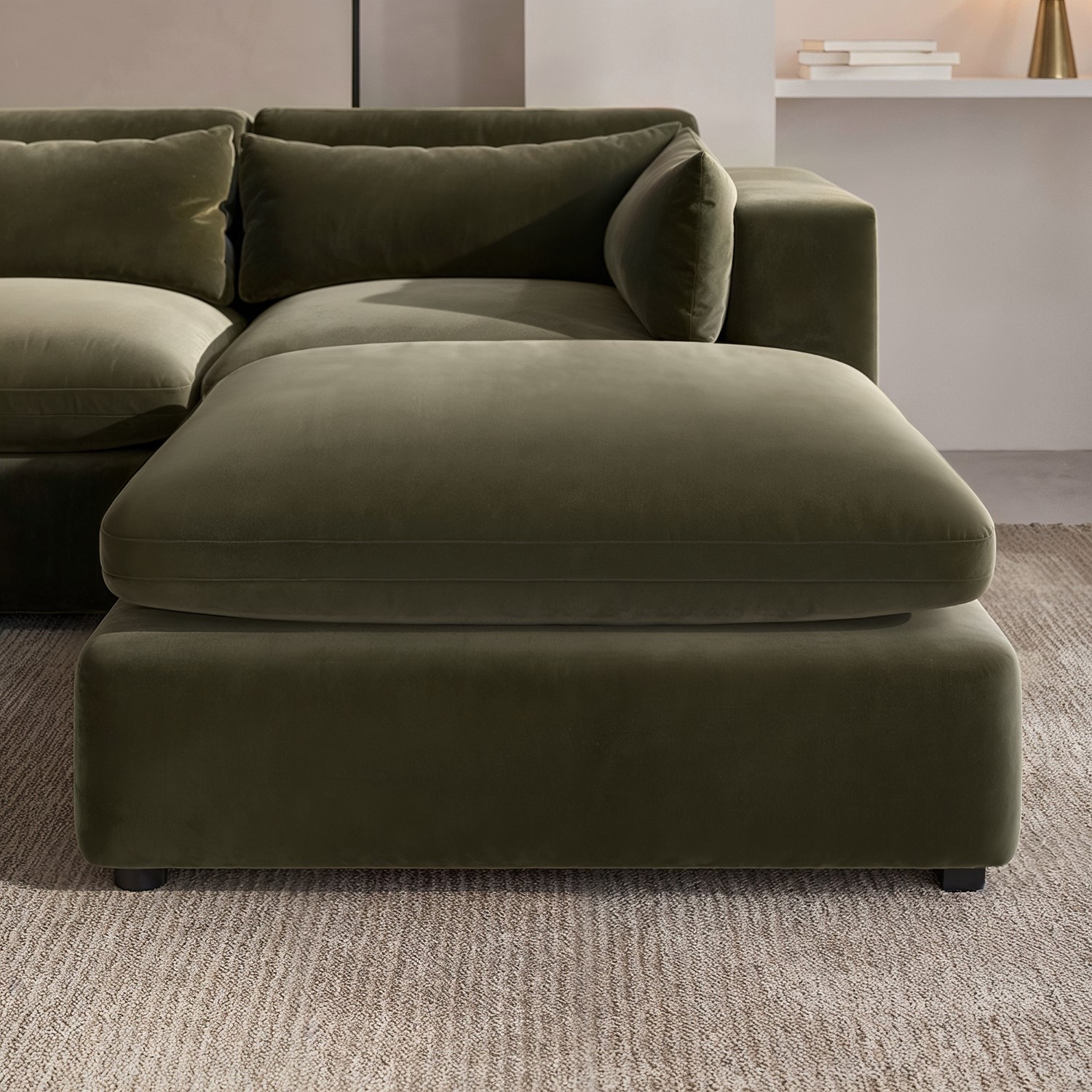 Add a touch of luxury to your living room with the Hudson Khaki Green Velvet Footstool. This large footstool, upholstered in a striking green velvet, doubles up as extra seating. Filled with foam for optimal comfort, it's easy to assemble by simply attaching the feet. The perfect addition to the Hudson range, this footstool will elevate your space.