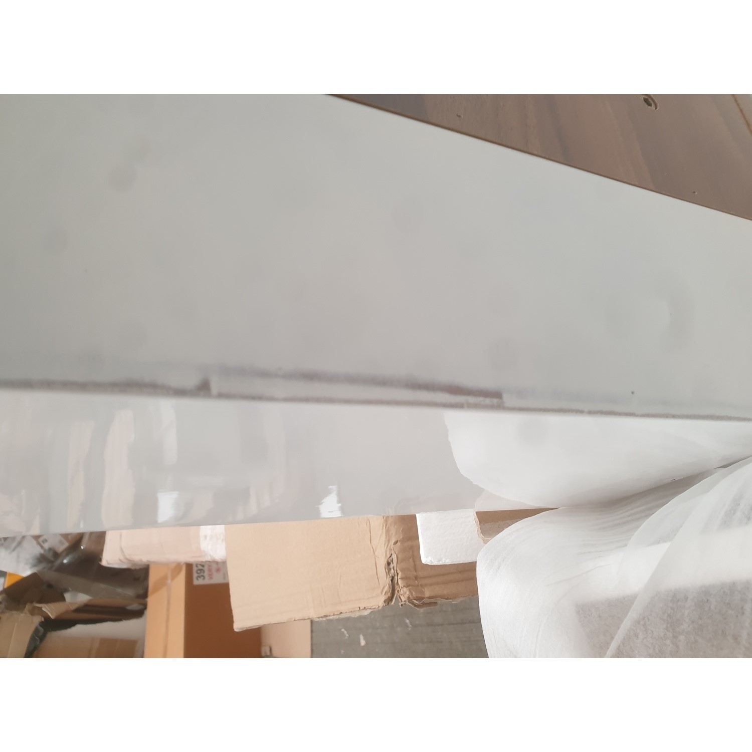 The Tiffany Large White Gloss Coffee Table have some minor cosmetic damage. There is small crack on the top, the paint has faded underneath the coffee table. This will not stop the product from functioning. Please see the images for more information.