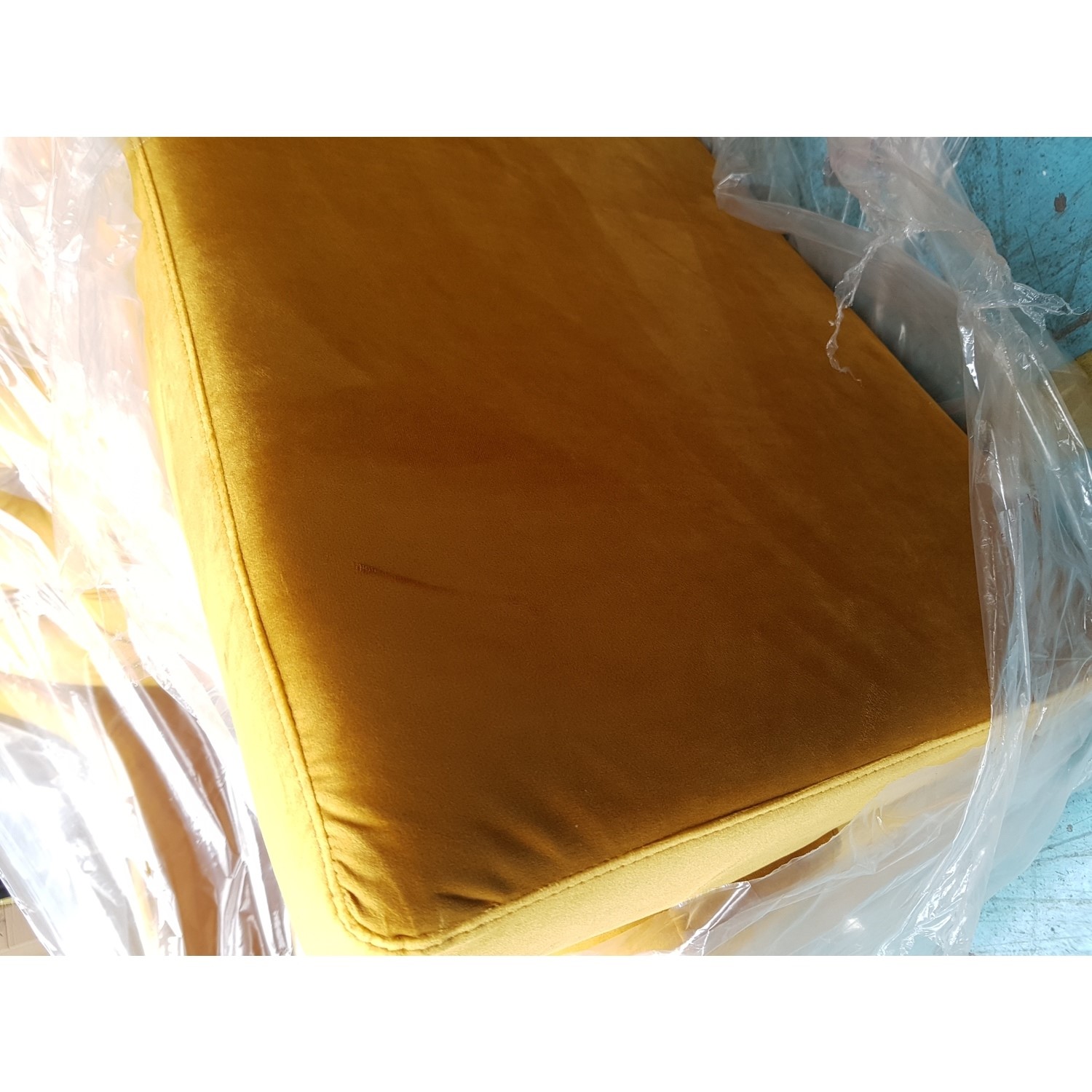 The Cole Velvet Armchair has some minor cosmetic damage. There is a small mark next to the right arm. This will not stop the product from functioning. Please see the images for more information.