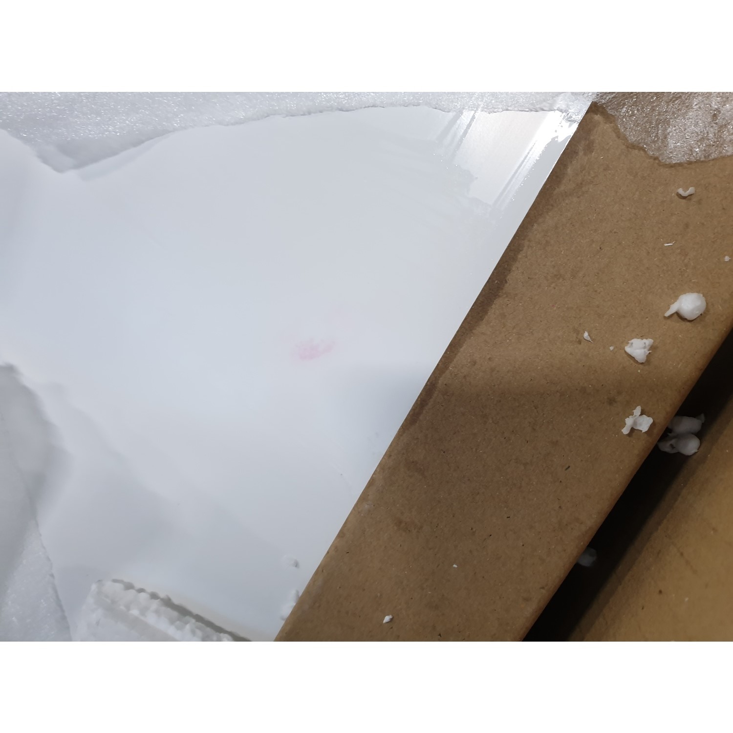 The Elms Narrow White Console Table with Drawers has some minor cosmetic damage. There is a pink stain on top. This will not stop the product from functioning. Please see the images for more information.