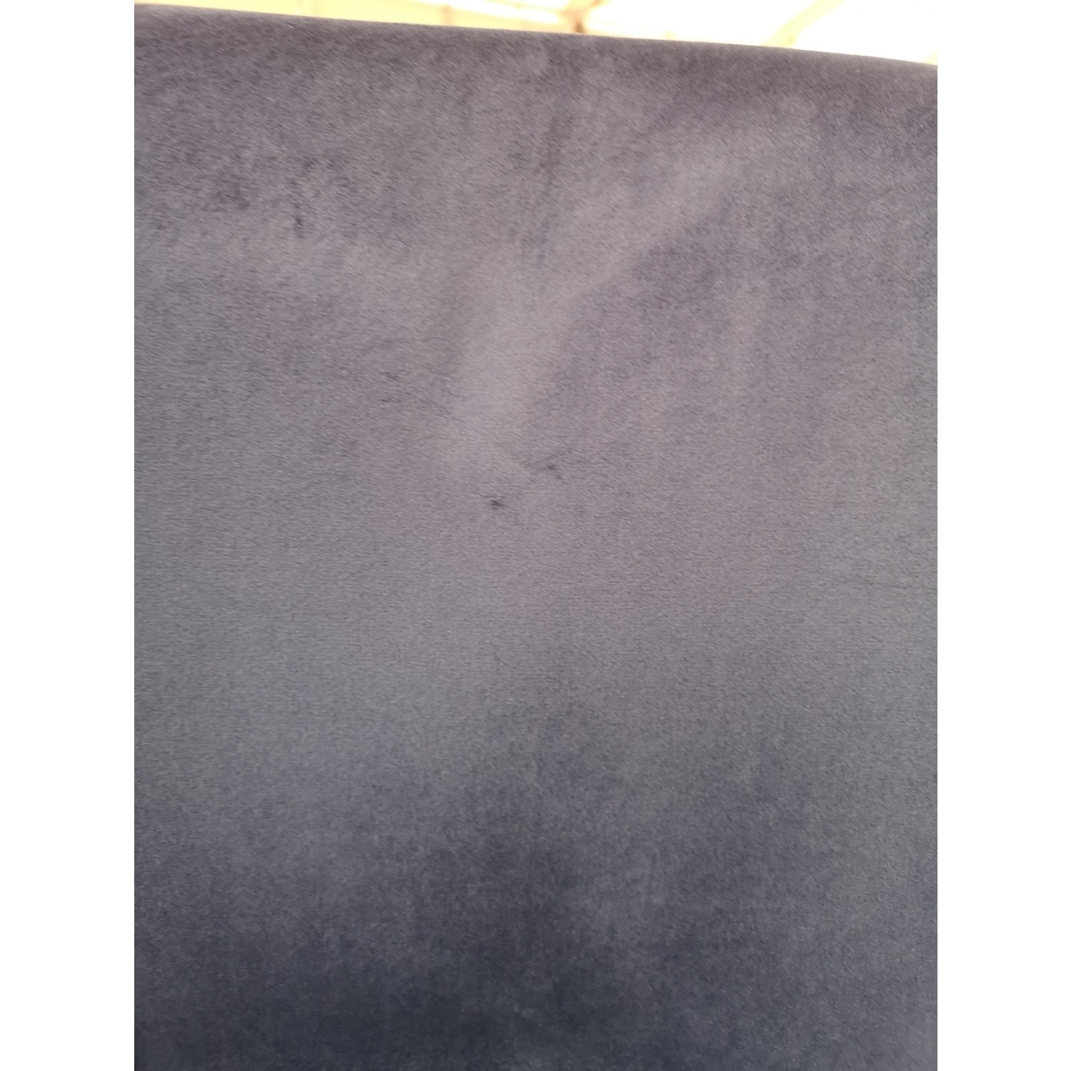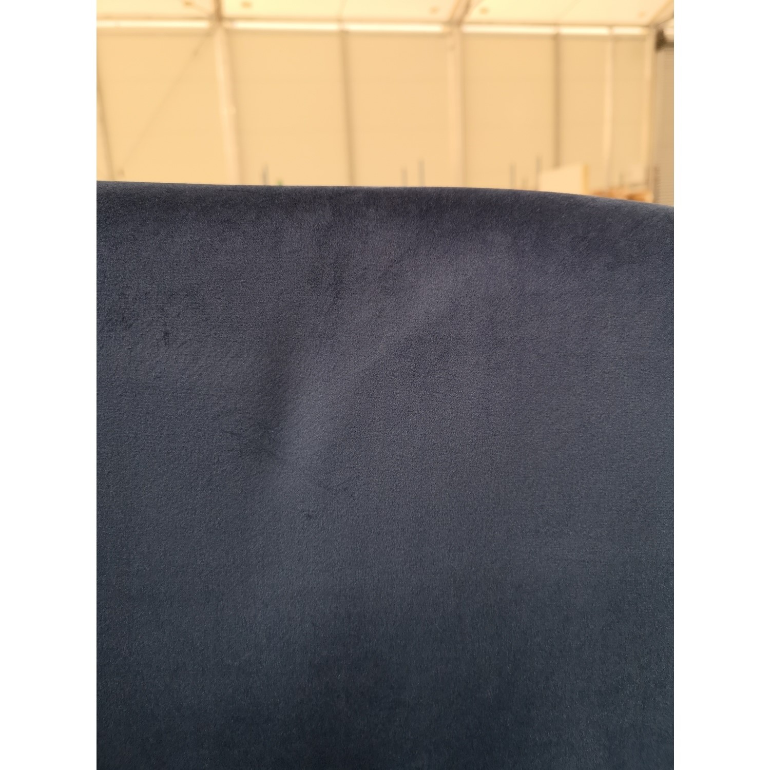 - Sturdy gold base contrasts beautifully with the opulent blue upholstery