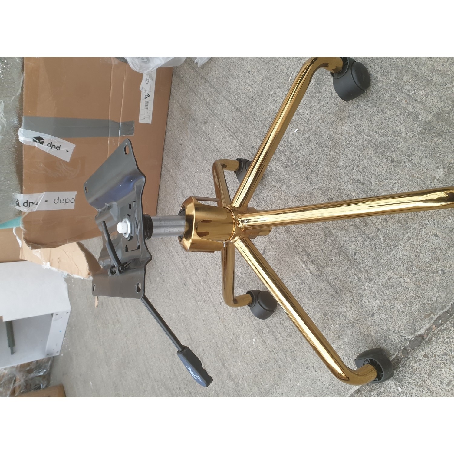 The Marley Navy Blue Velvet Swivel Office Chair have some minor cosmetic damage. There is scratch and scuff marks on the chair also has slight scratch marks on the leg. This will not stop the product from functioning. Please see the images for more information.