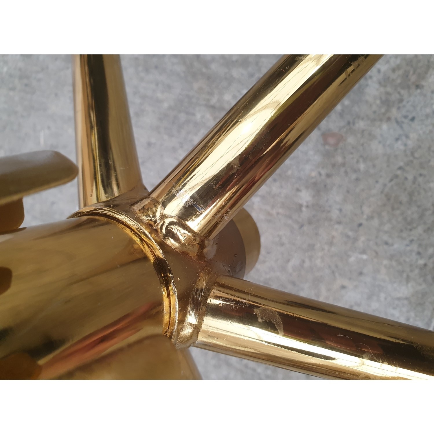 - Sturdy gold base contrasts beautifully with the opulent blue upholstery