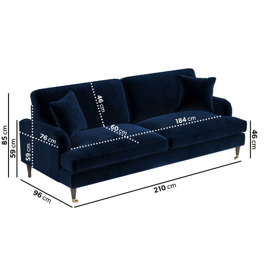 This traditional Payton sofa accommodates up to four people comfortably and includes two matching scatter cushions for added style and comfort. Classic ruched saddle arms and dark wood legs with gold castors complete the modern look. It’s built to last too, with a sturdy solid wood frame. Assembly is easy; simply fix the legs into position. Light oak legs are available to purchase on this product, just add yours from our package deals, recommended accessories or at checkout. All Payton products are delivered with dark wood legs as standard.