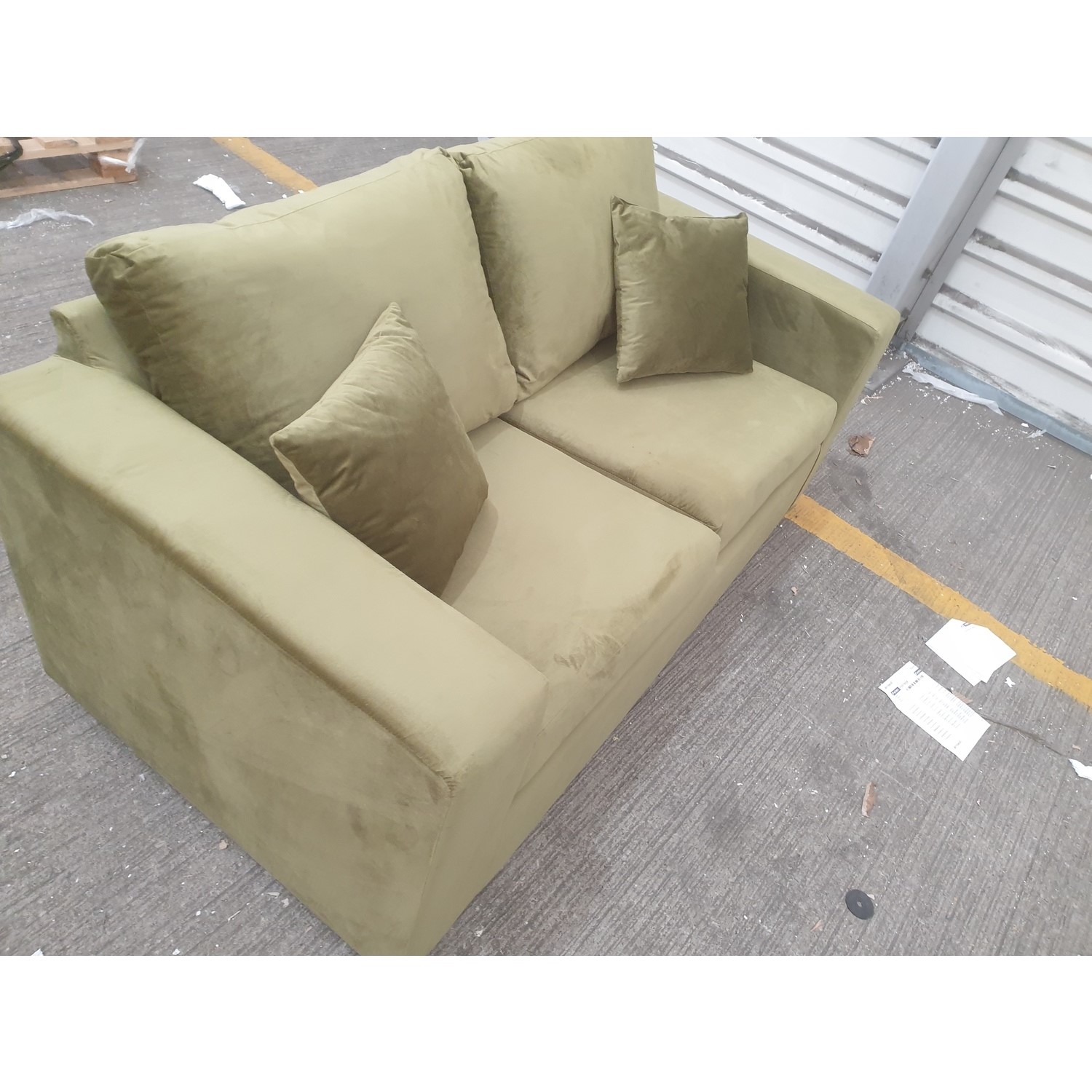 The Layton Olive Green 2 Seater Sofa Bed have some minor cosmetic damage. There is scratch marks on front legs. This will not stop the product from functioning. Please see the images for more information.