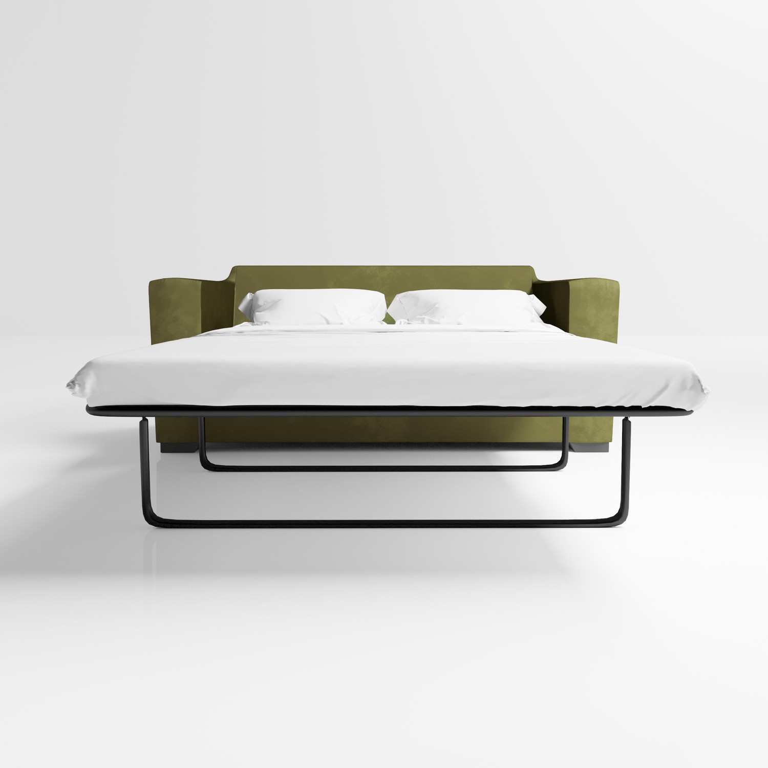 - Olive green 2-seater sofa with fold out double bed