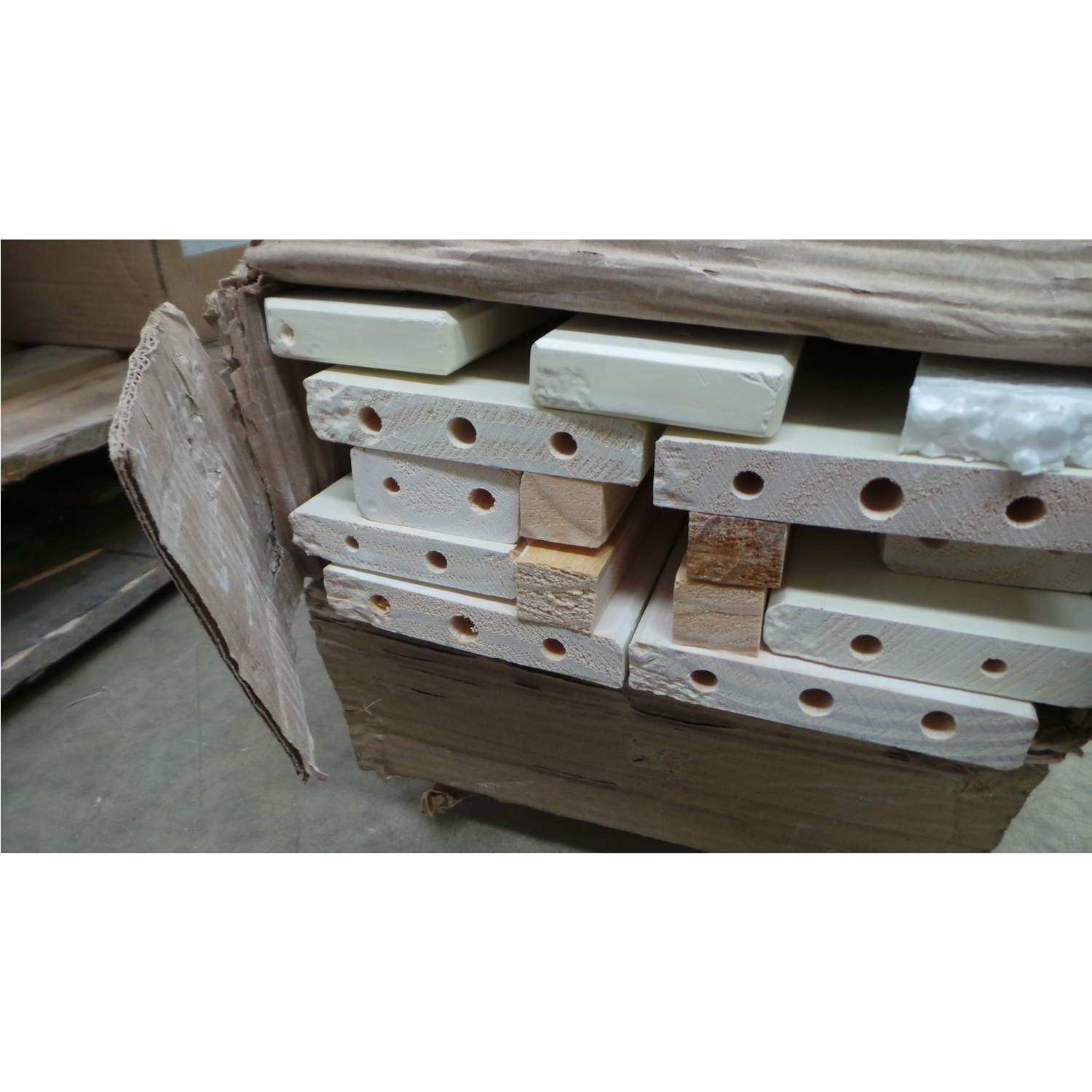 The ends of the units are damaged, wood has come away from the parts.