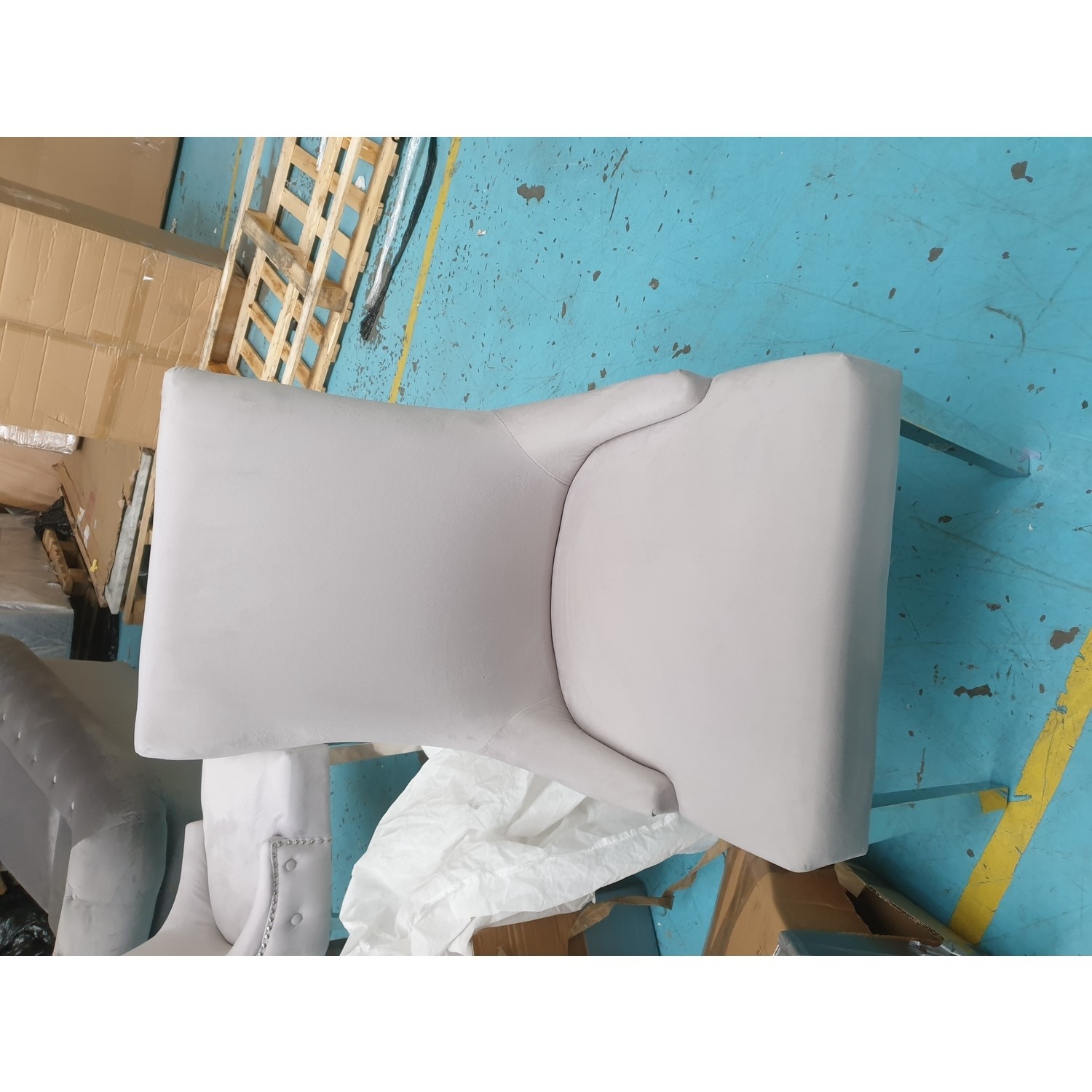 The Arianna Crushed Velvet Pair of Dining Chairs have some minor cosmetic damage. There is a very small hole in fabric on the back on one of the chairs. This will not stop the product from functioning. Please see the images for more information.