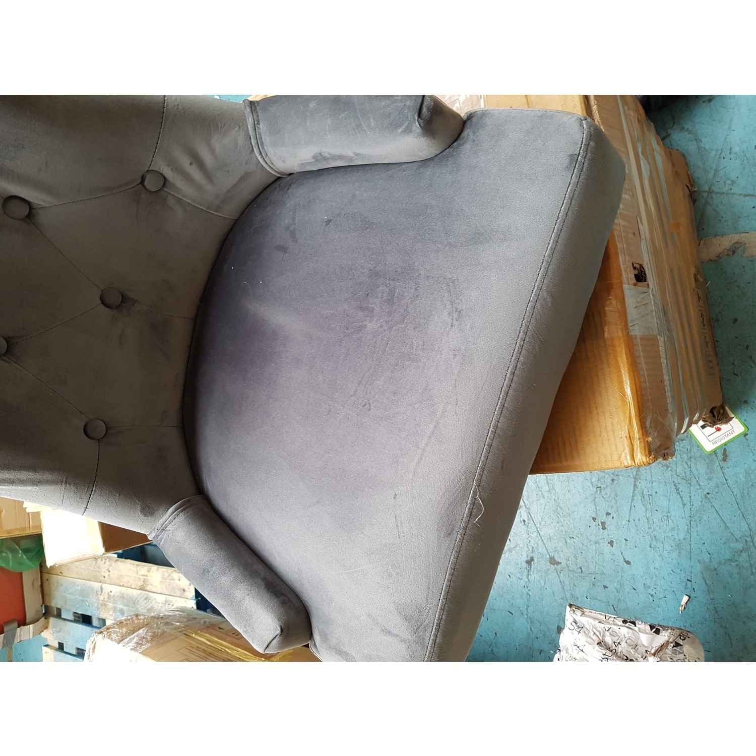 - Charcoal grey coloured velvet with elegant tapered chair legs with a smooth black finish