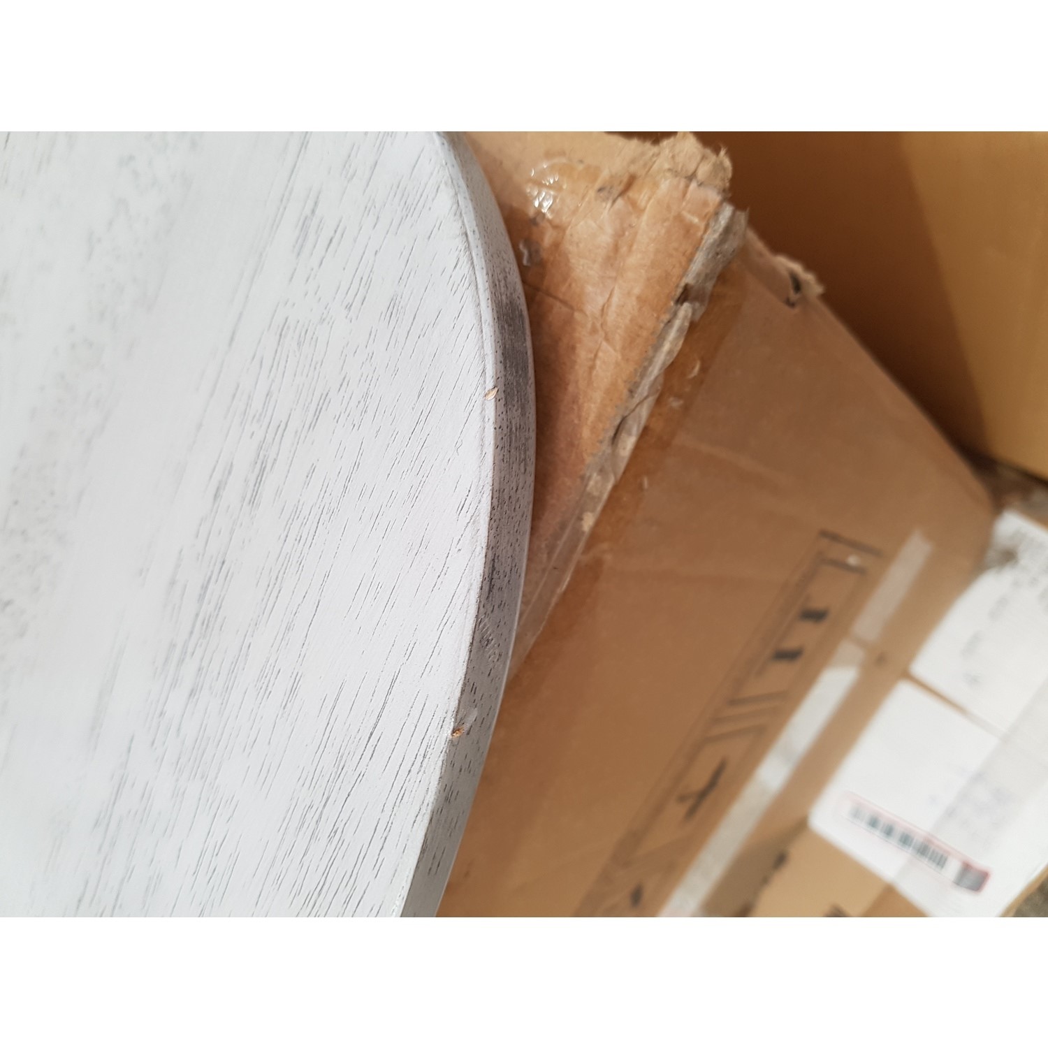 The Cami Pair of Grey Wooden Spindle Dining Chairs have some minor cosmetic damage. The chairs are marked with a couple of small chips and some of the corners are a little scuffed. This will not stop the product from functioning. Please see the images for more information.