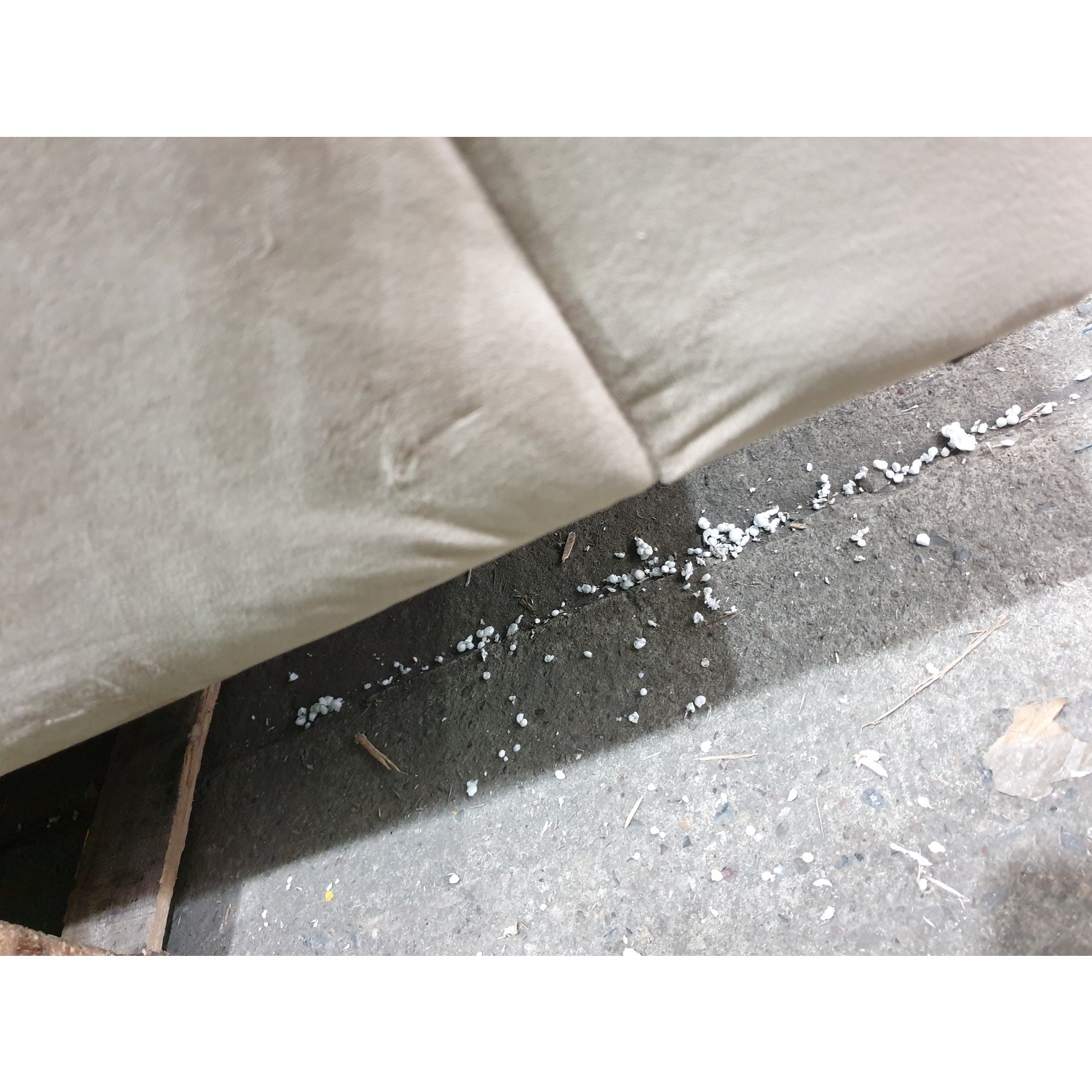 The Payton Beige Velvet 3 Seater Sofa has some minor cosmetic damages. There is minor indentation and slight marks on the right arm. This will not stop the product from functioning. Please see the images for more information.