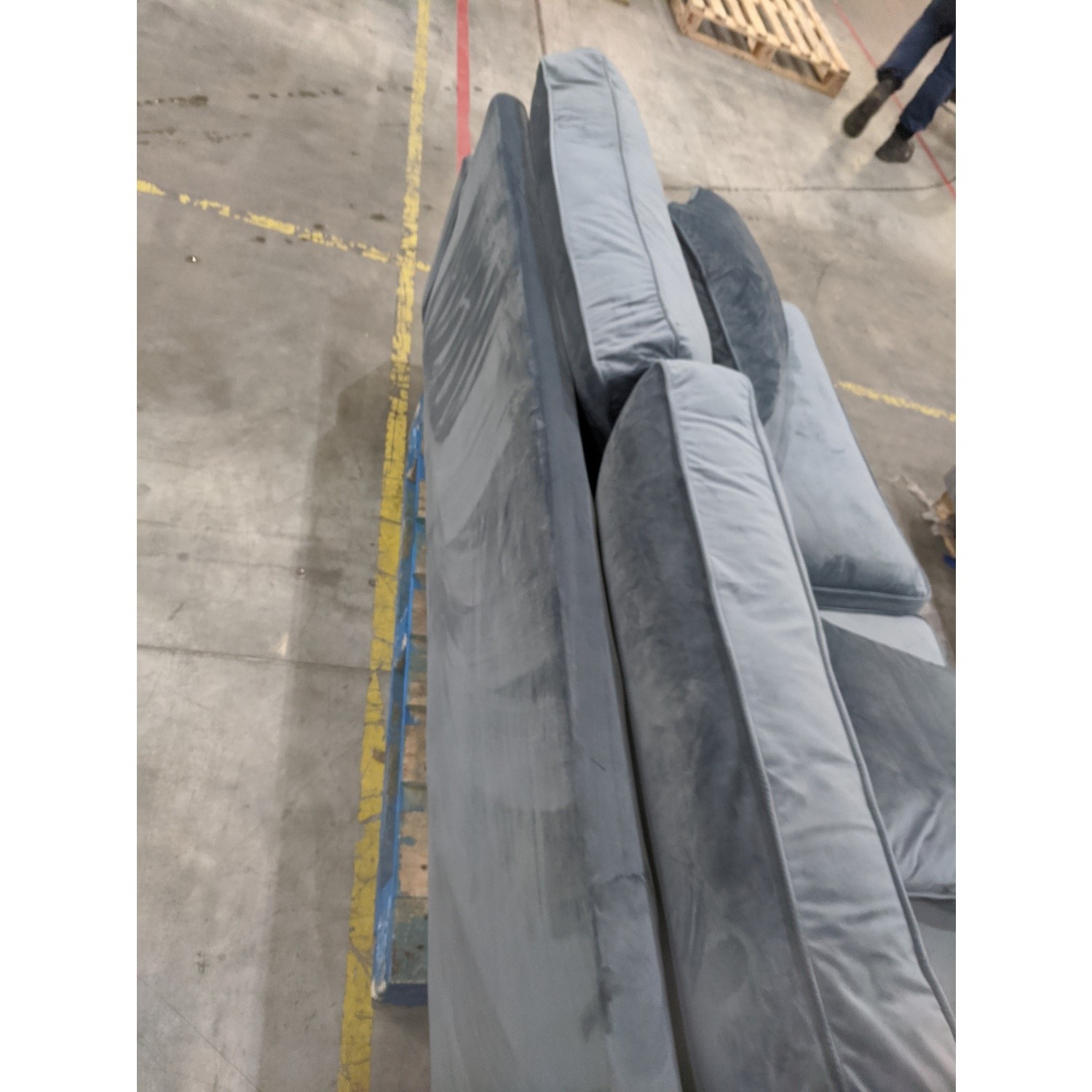 The Payton Petrol Blue Velvet 3 Seater Sofa have some minor cosmetic damage. It has been repaired, stitching done and full cleaning. This will not stop the product from functioning. Please see the images for more information.