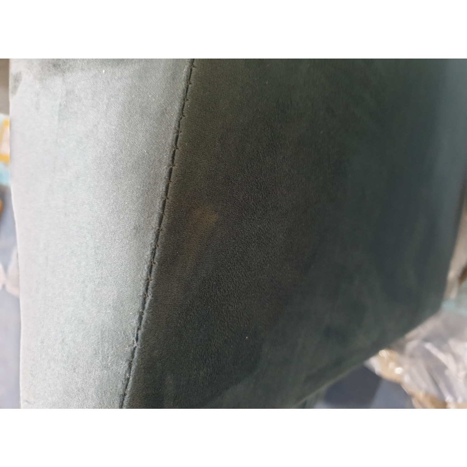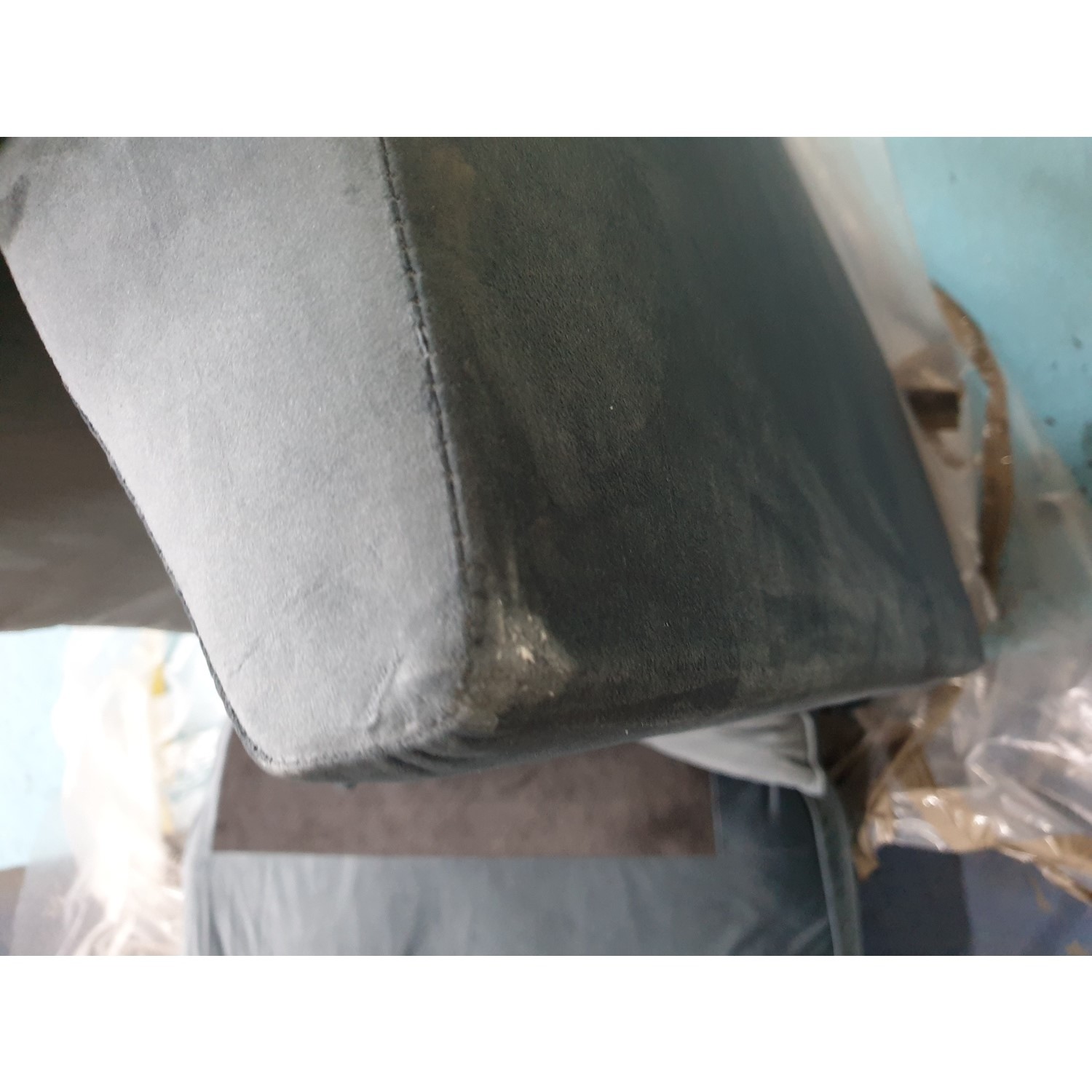 The Payton Petrol Blue Velvet Loveseat has some minor cosmetic damage. The fabric is slightly ripped on the top right back of the chair. This will not stop the product from functioning. Please see the images for more information.