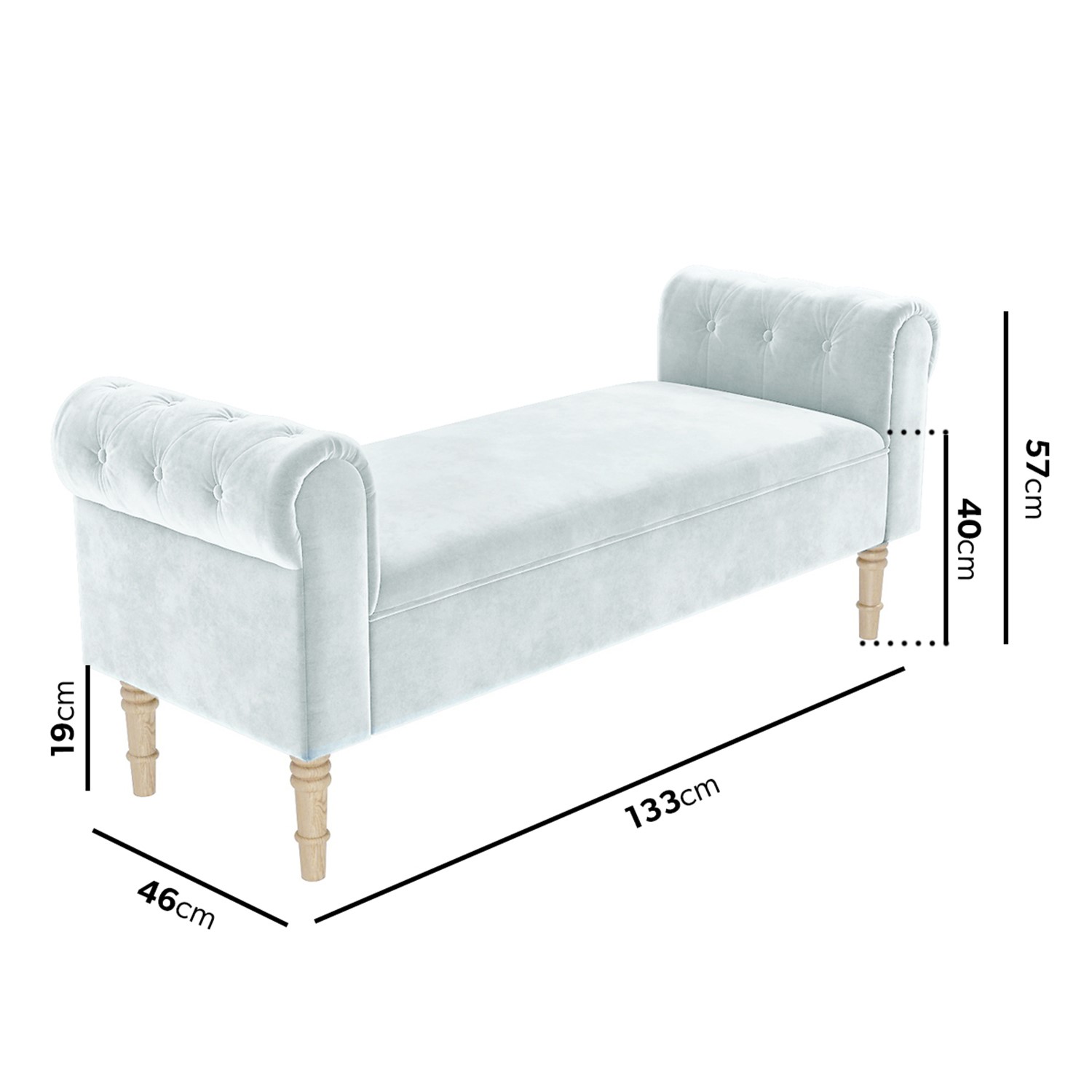 - Dimensions: H 57 x W 46 x D 133cm