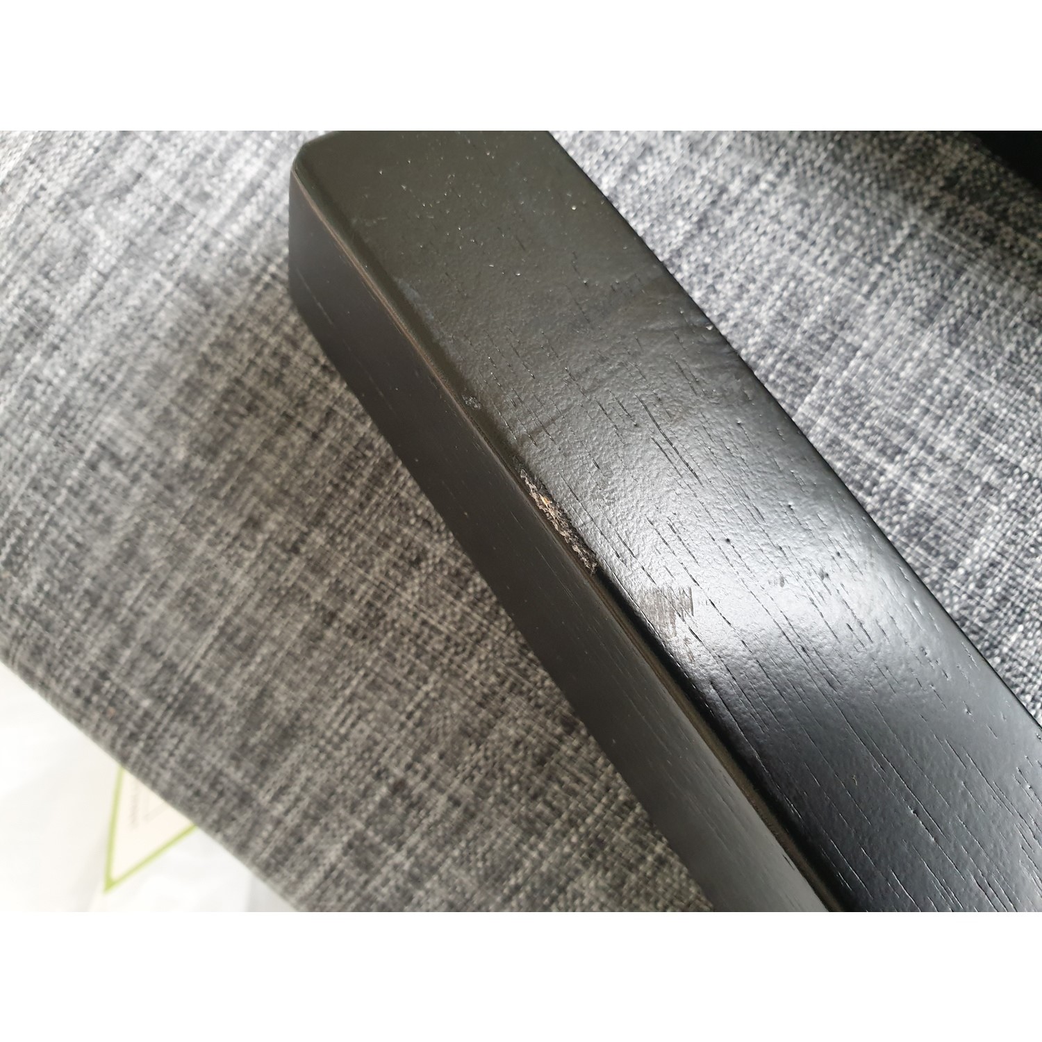 These New haven Set of 2 Grey Fabric Dining Chairs have some minor cosmetic damage. There is some slight chipped paint on the legs. This will not stop the product from functioning. Please see the images for more information.