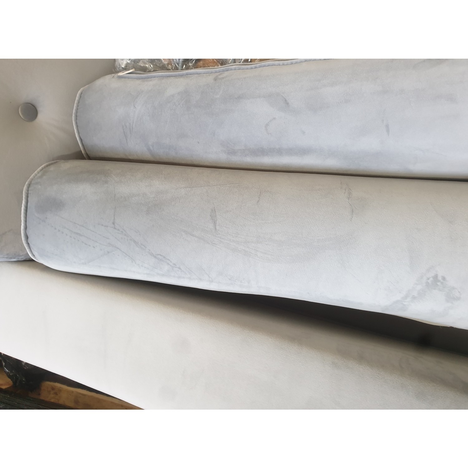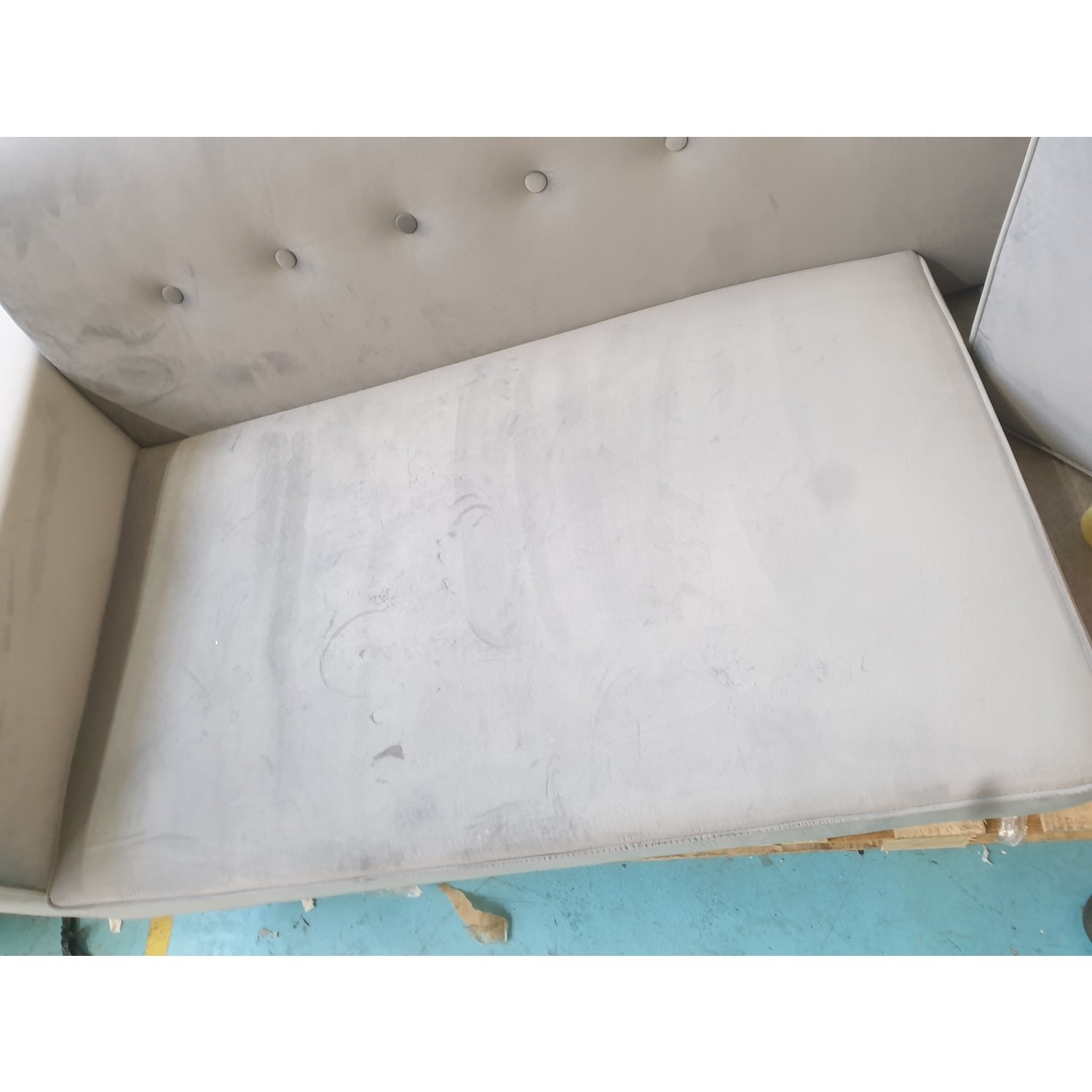 The Idris Silver Grey Velvet Corner Sofa have some minor cosmetic damage. There is a mark all over the item. This will not stop the product from functioning. Please see the images for more information.