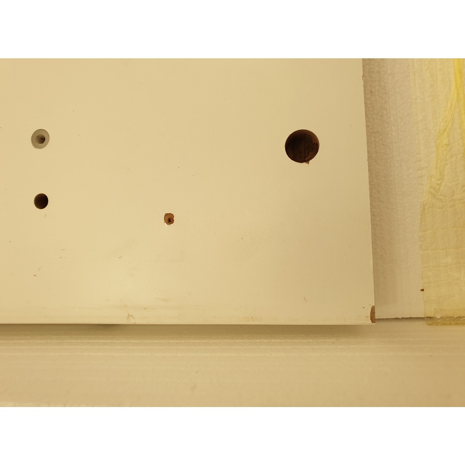 The Tiffany High Gloss Console Table has some minor cosmetic damage. There are some slight chips on the innerside of the panels. This will not stop the product from functioning. Please see the images for more information