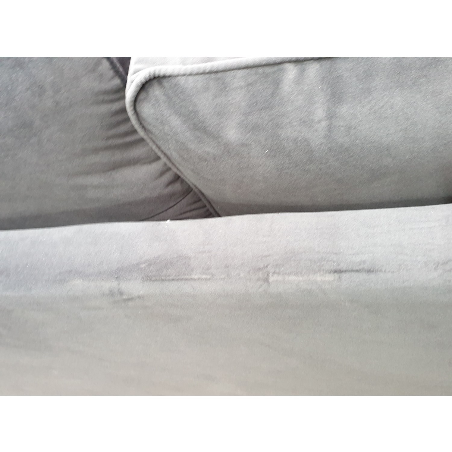 The Payton Charcoal Grey Velvet 3 Seater Sofa has some cosmetic damage. There is a scratch mark on front lower right side with small holes in fabric and scratch marks on the top back side. This will not stop the product from functioning. Please see the images for more information.