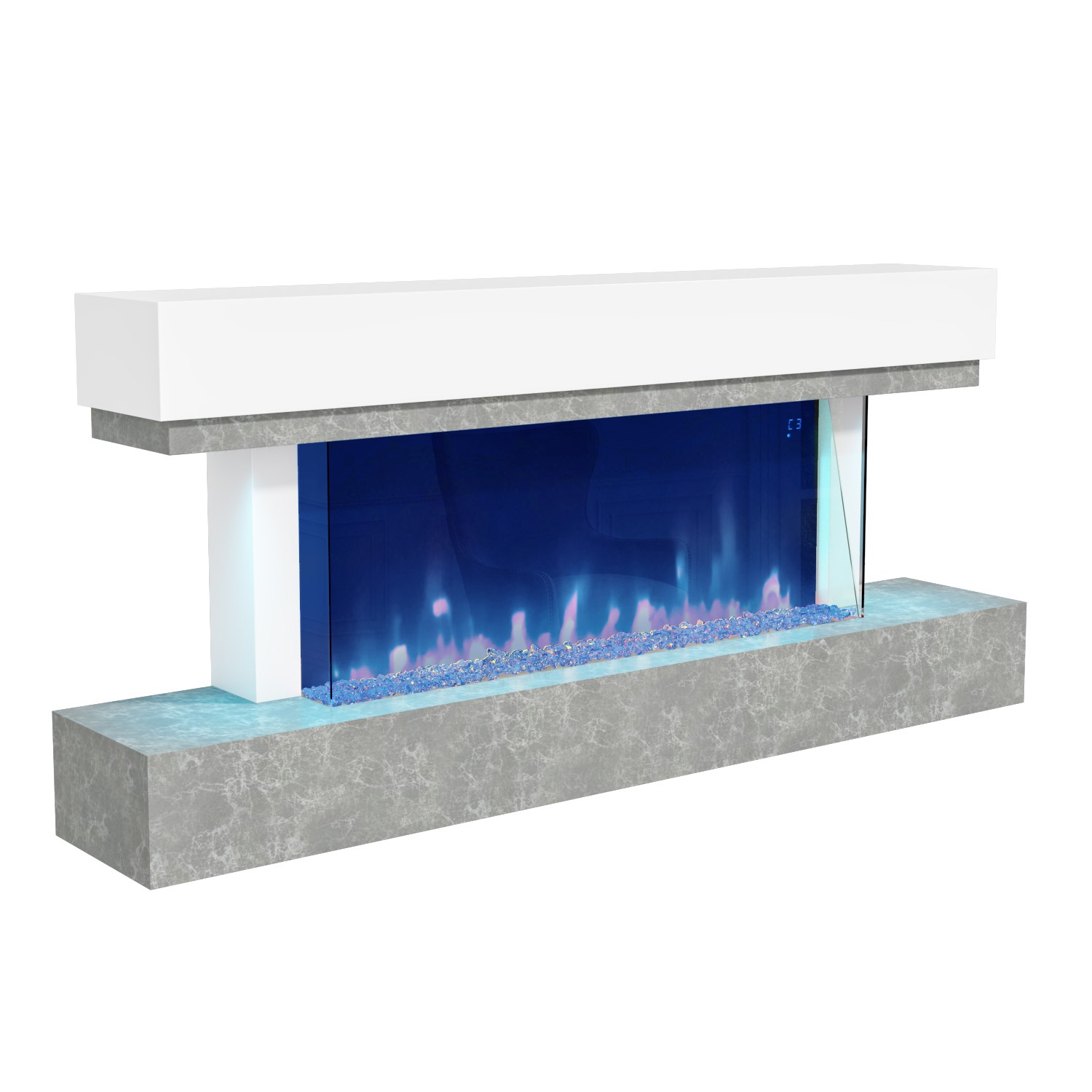 The Amberglo White and Grey Concrete Effect Wall Mounted Alexa Electric Fireplace have damage. Product chipped on the both edges or corners, all accessories replaced. This will not stop the product from functioning. Please see the images for more information.