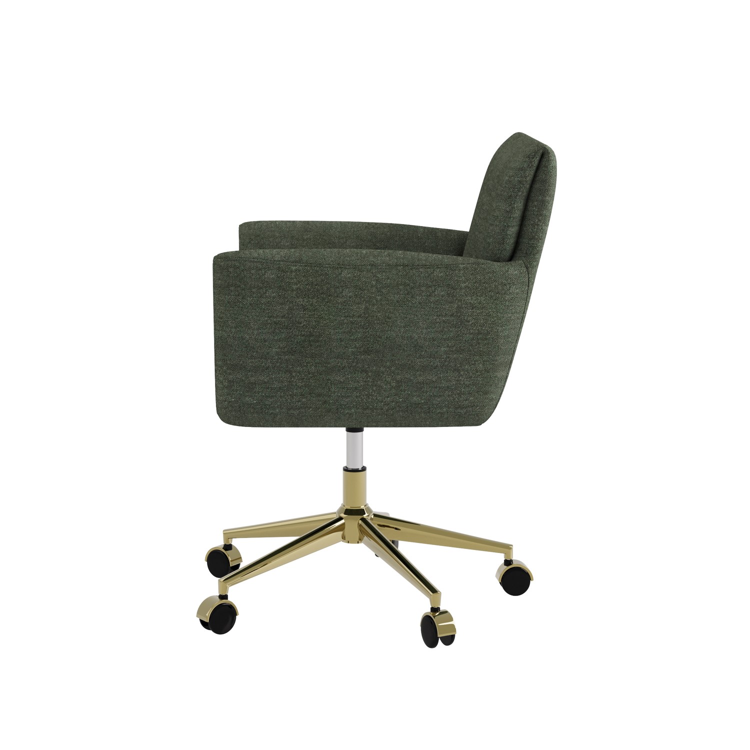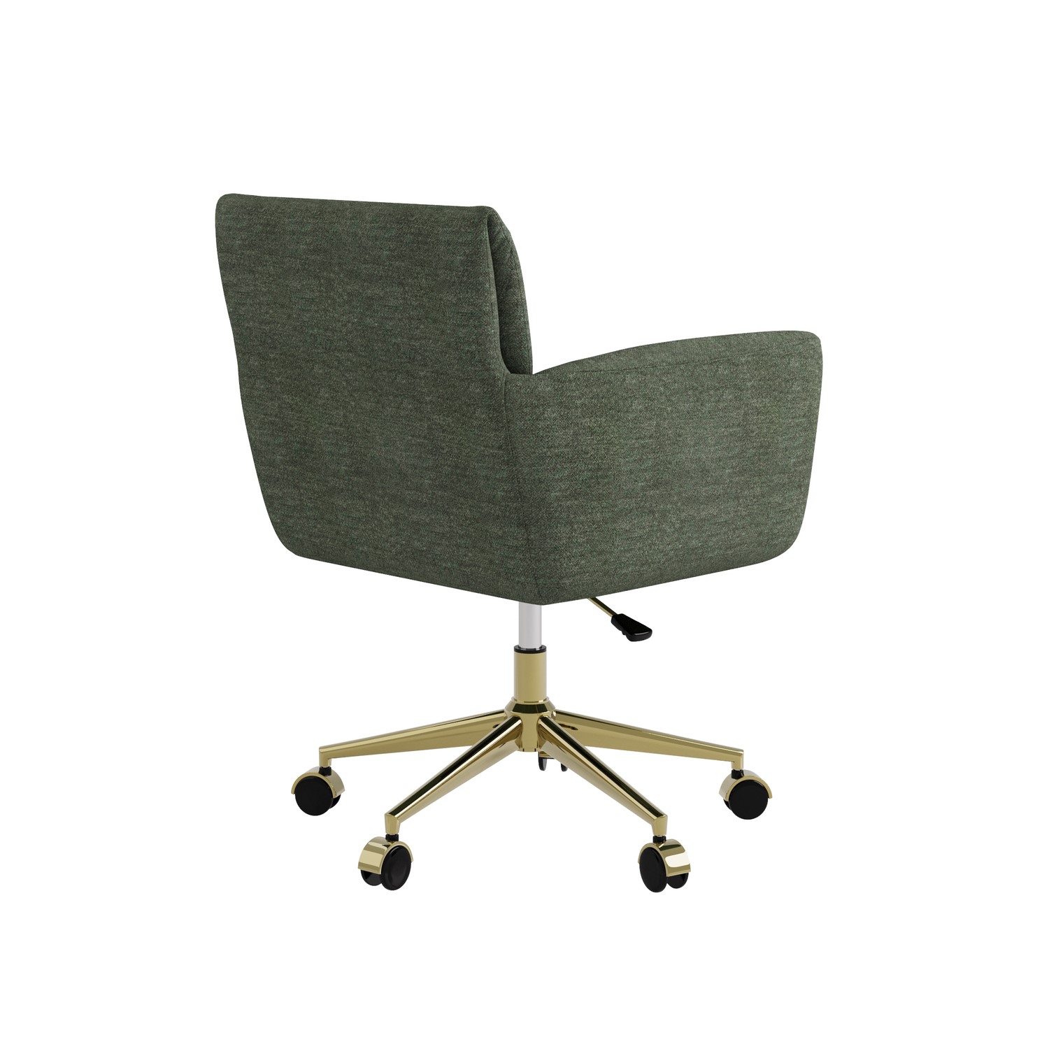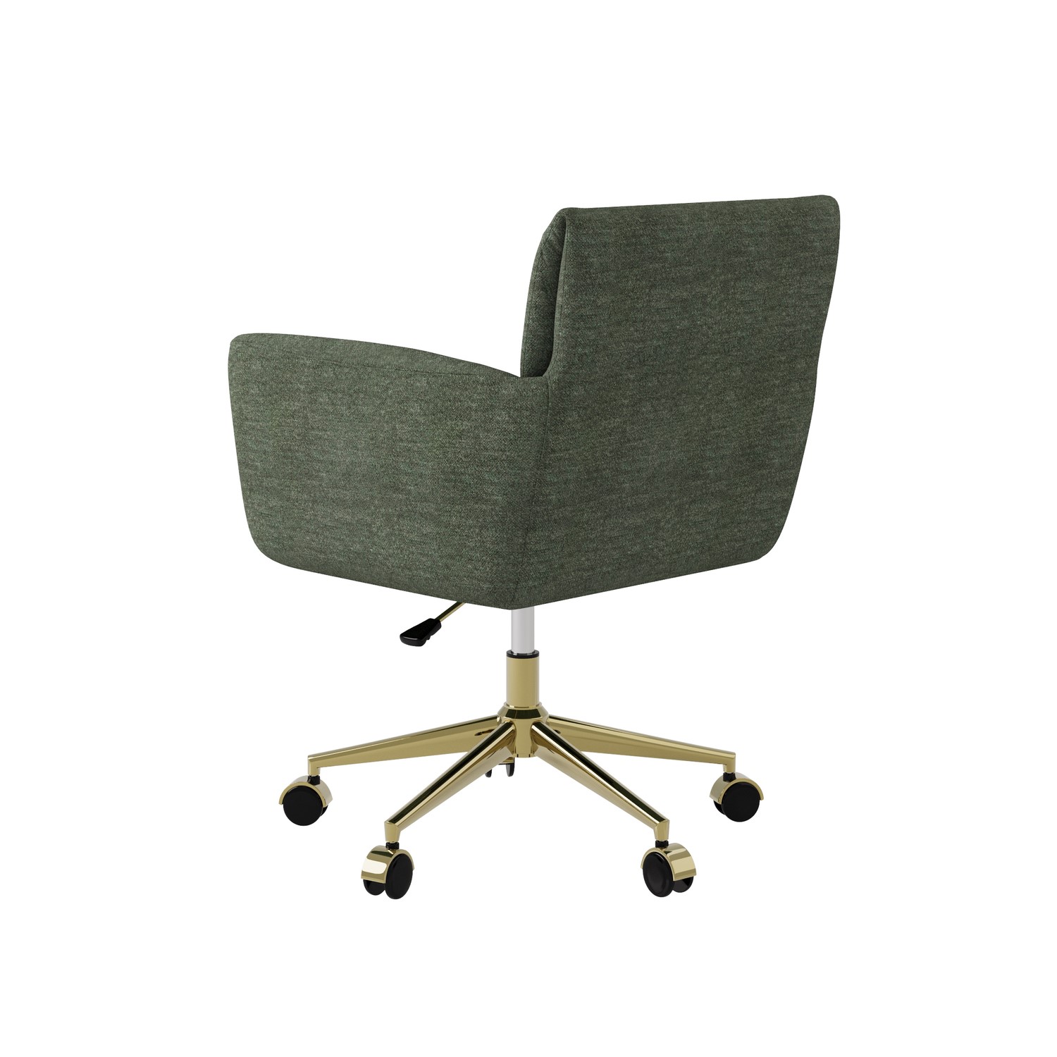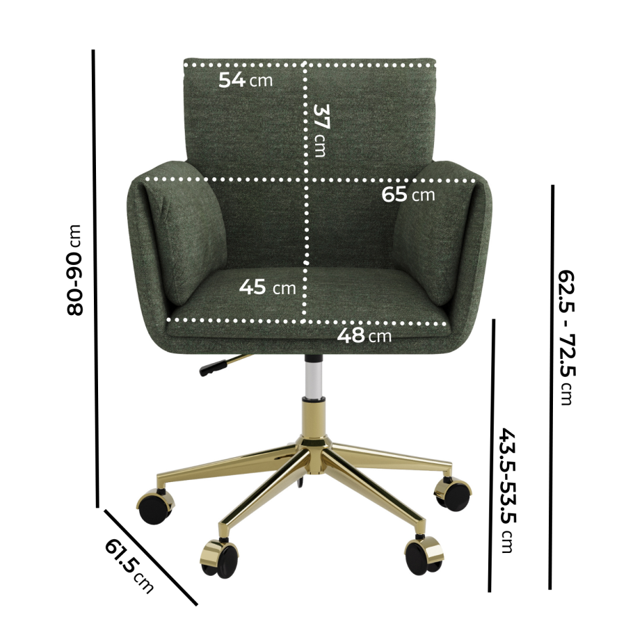 The Reed green chenille office chair is the perfect blend of style, comfort, and functionality, making it an ideal addition to your office or dressing room. Upholstered in soft, green chenille fabric, this chair offers a neutral and versatile look that can easily complement a variety of spaces. The ergonomic design provides excellent back support, ensuring comfort during long working hours. With a tall backrest, adjustable height, and armrests, it offers full support for improved posture. The gold legs and castors add a touch of elegance, while the swivel mechanism ensures easy mobility. Whether used in a home office, workspace, or dressing room, this office chair brings both style and comfort to any setting.