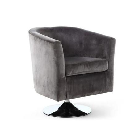 This stylish everyday Grey Brushed Velvet Tub chair features a chrome swivel base. With clean smooth lines, well padded back and seat this tub chair offers the perfect comfort and support you need, looks stunning anywhere in the home.