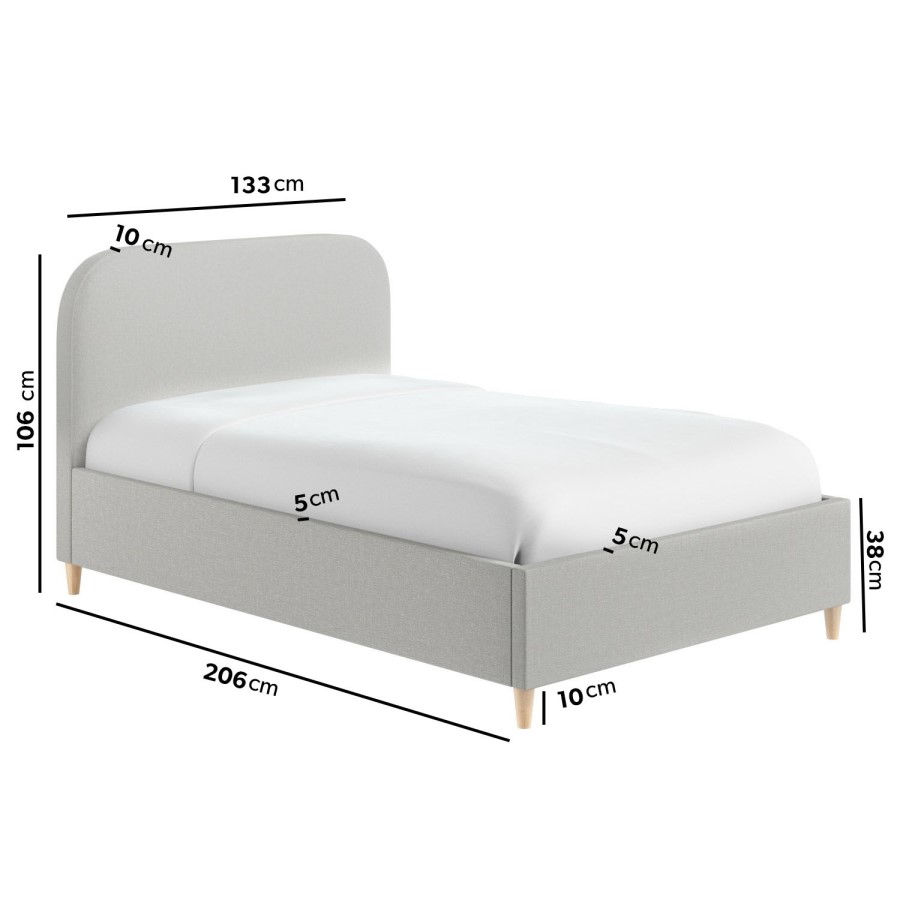 The Zara bed frame is perfect for lovers of minimalist style. This modern bed combines simplicity and comfort in one contemporary design. Featuring a thick, padded curved headboard upholstered in durable, soft-to-touch grey linen fabric and stylish tapered legs. Built with a sturdy wooden frame and a sprung-slatted base supported by central legs, this bed ensures long-lasting durability and stability. This bed fits a UK standard small double-size mattress.