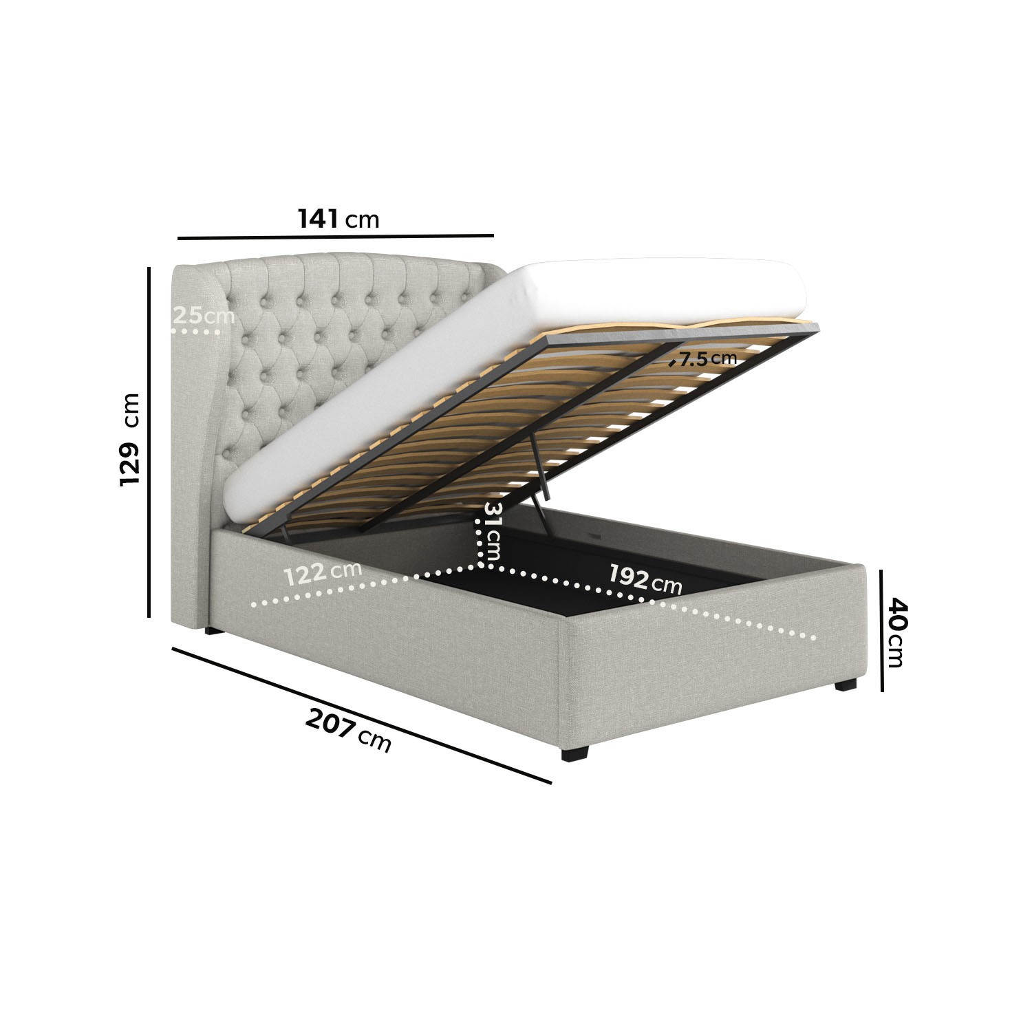 Make a stunning statement in your bedroom with this Safina wingback ottoman bed frame with an elegant Chesterfield-inspired design. It includes a tall, modern headboard with deep button detailing, perfect for propping up and relaxing. It's space-saving too, thanks to the ottoman design, which means you can store anything from bedding to towels. You'll soon be clutter-free. Made with a strong wooden frame, it's been built to last. It fits any UK standard small double mattress, which isn't included giving you the option to choose one that's perfect for you; check out our package deals below.