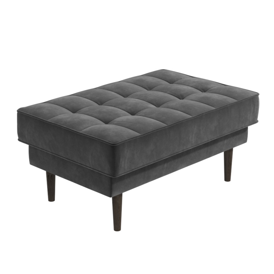 - Grey footstool with chesterfield-style button detailing