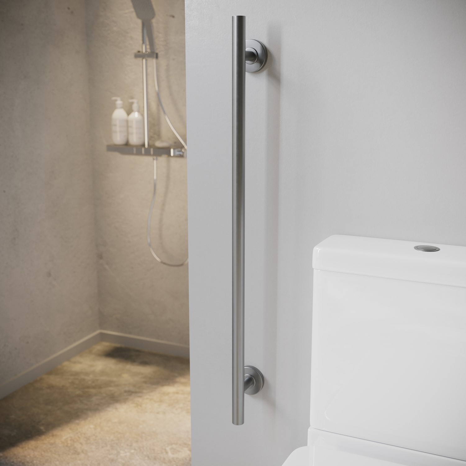 Add practicality and peace of mind to your bathroom with this gunmetal grey grab rail. Whether used as a toilet grab bar, shower grab rail, or bath support, it enhances accessibility and stability in key areas of your space—suitable for installation in both wet and dry environments thanks to its water-resistant construction. This large grab rail can be installed vertical or horizontal for added versatility.