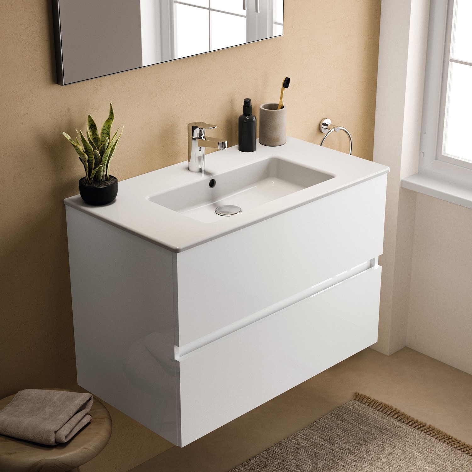 White Gloss Finish: Instantly brightens your bathroom and is complimentary of a range of brassware finishes, to match your chosen basin mixer tap of choice.