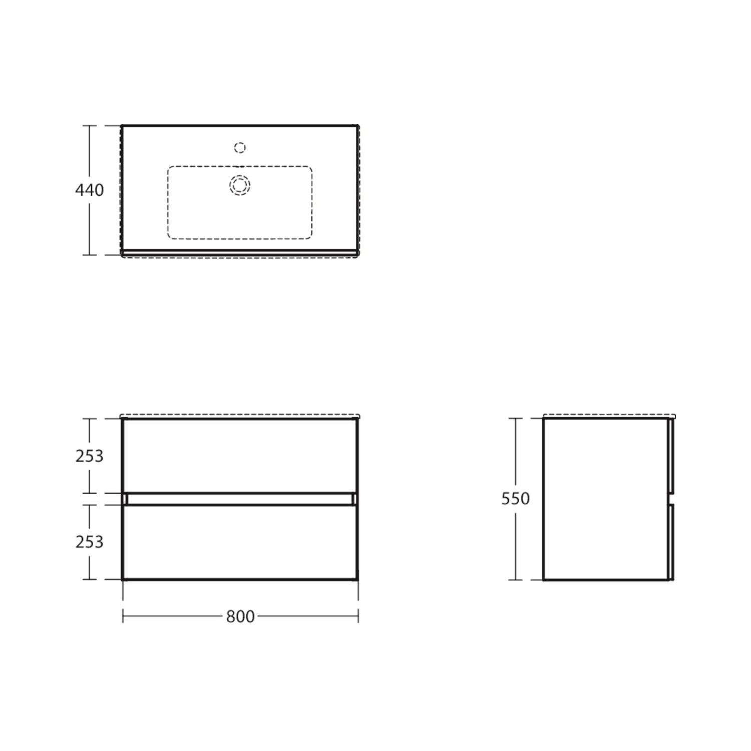 - Overall Basin Vanity Dimensions (including basin): H565mm x W815mm x D450mm