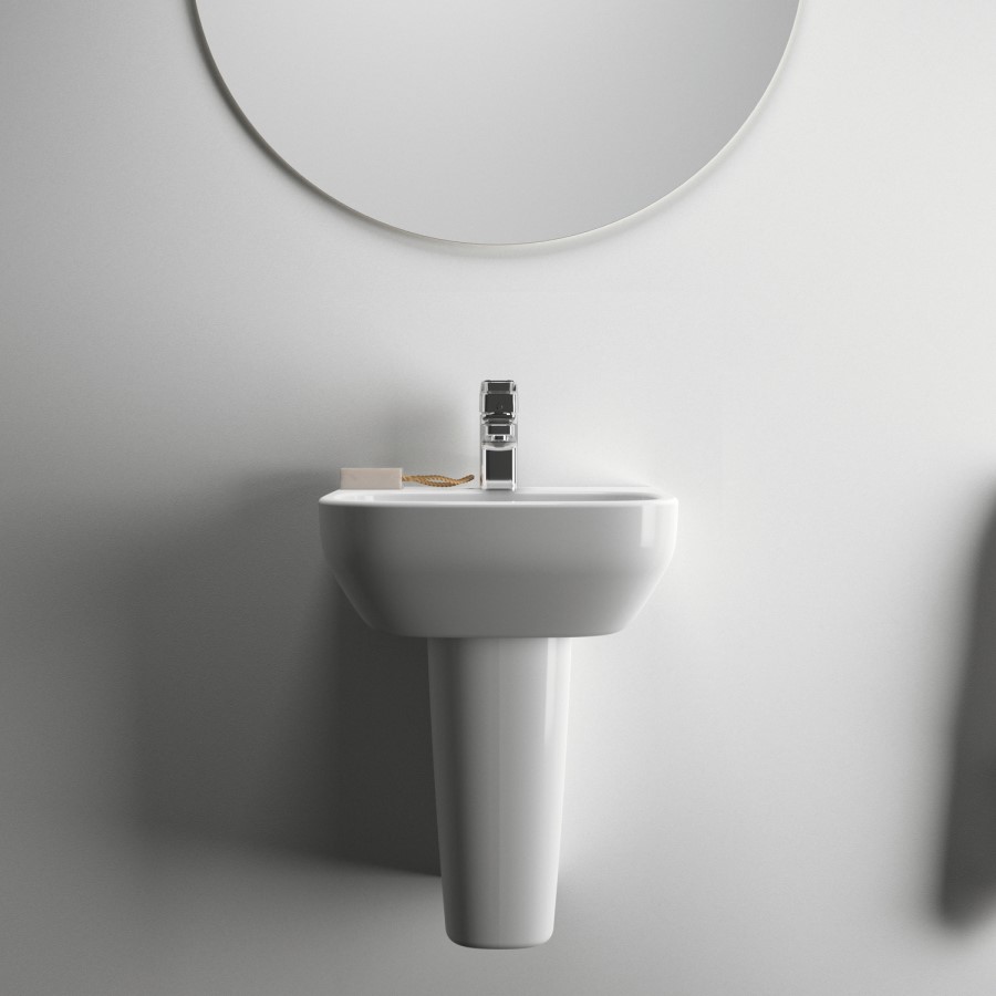 Space Saving 400mm Width: Compact width makes this curved pedestal sink perfect for smaller bathrooms, cloakrooms and en-suites.