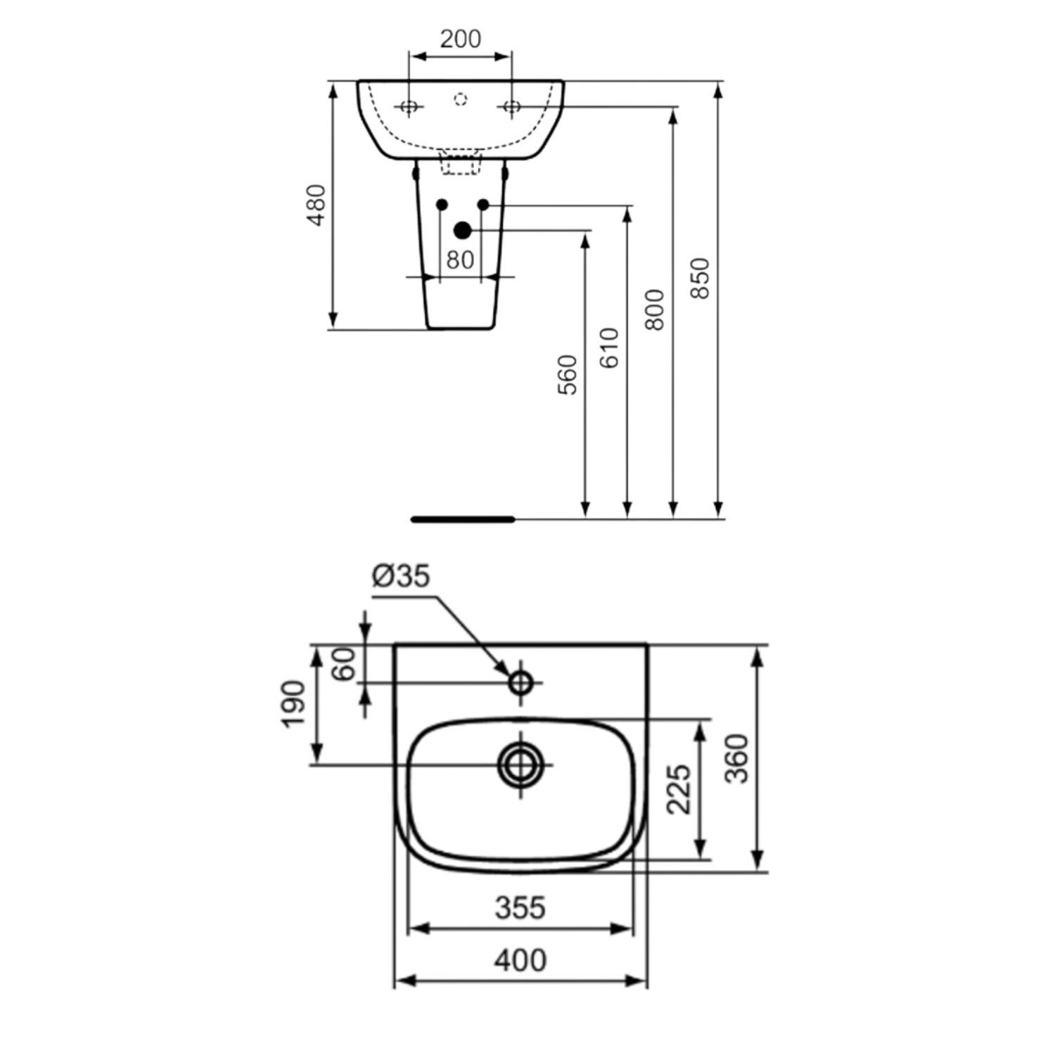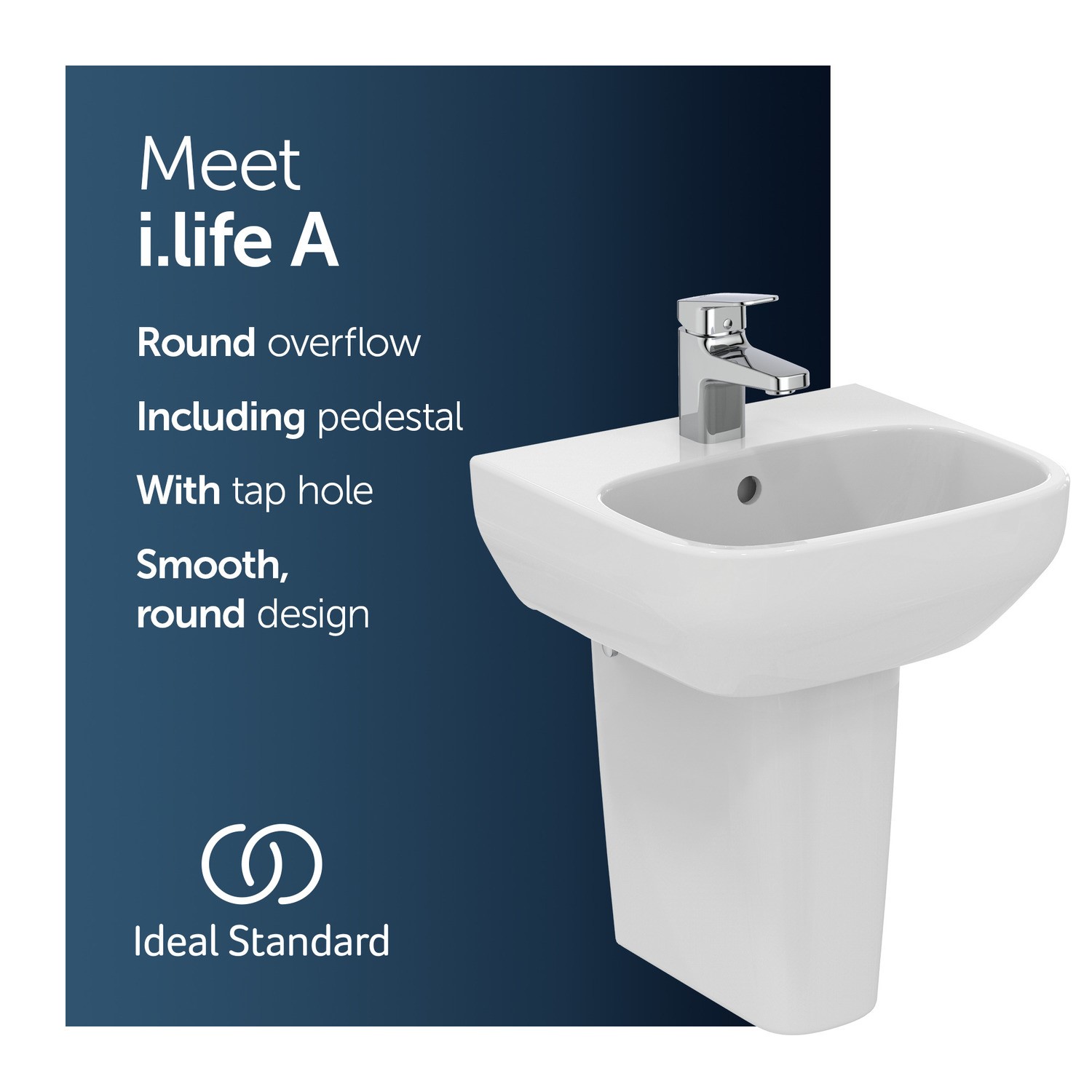 Bring effortless elegance to your space with the i.Life A 400mm Semi Pedestal Basin from Ideal Standard. Combining modern rectangular curves with a practical semi-pedestal that conceals unsightly pipework and gives the illusion of open floor space, this sink is designed for both beauty and function. The compact 400mm width and 360mm depth makes this size basin perfect for smaller bathrooms, cloakrooms or en-suites. Featuring one central tap hole, it's ideal for a mono basin mixer tap of your choice. The overflow is coverless meaning you can pair this basin with brassware in any finish. Crafted from high-quality ceramic and finished with a glossy enamel coating, it’s built to stand the test of time while adding a fresh, contemporary touch to your bathroom, and is backed with Ideal Standard's lifetime guarantee for peace of mind.