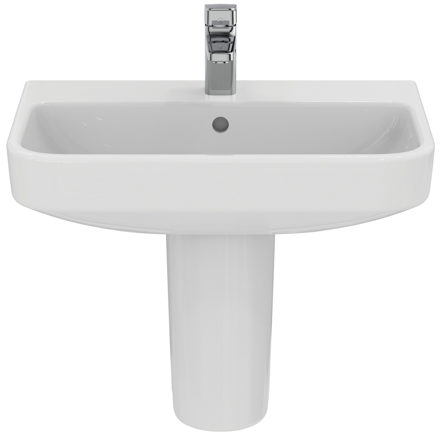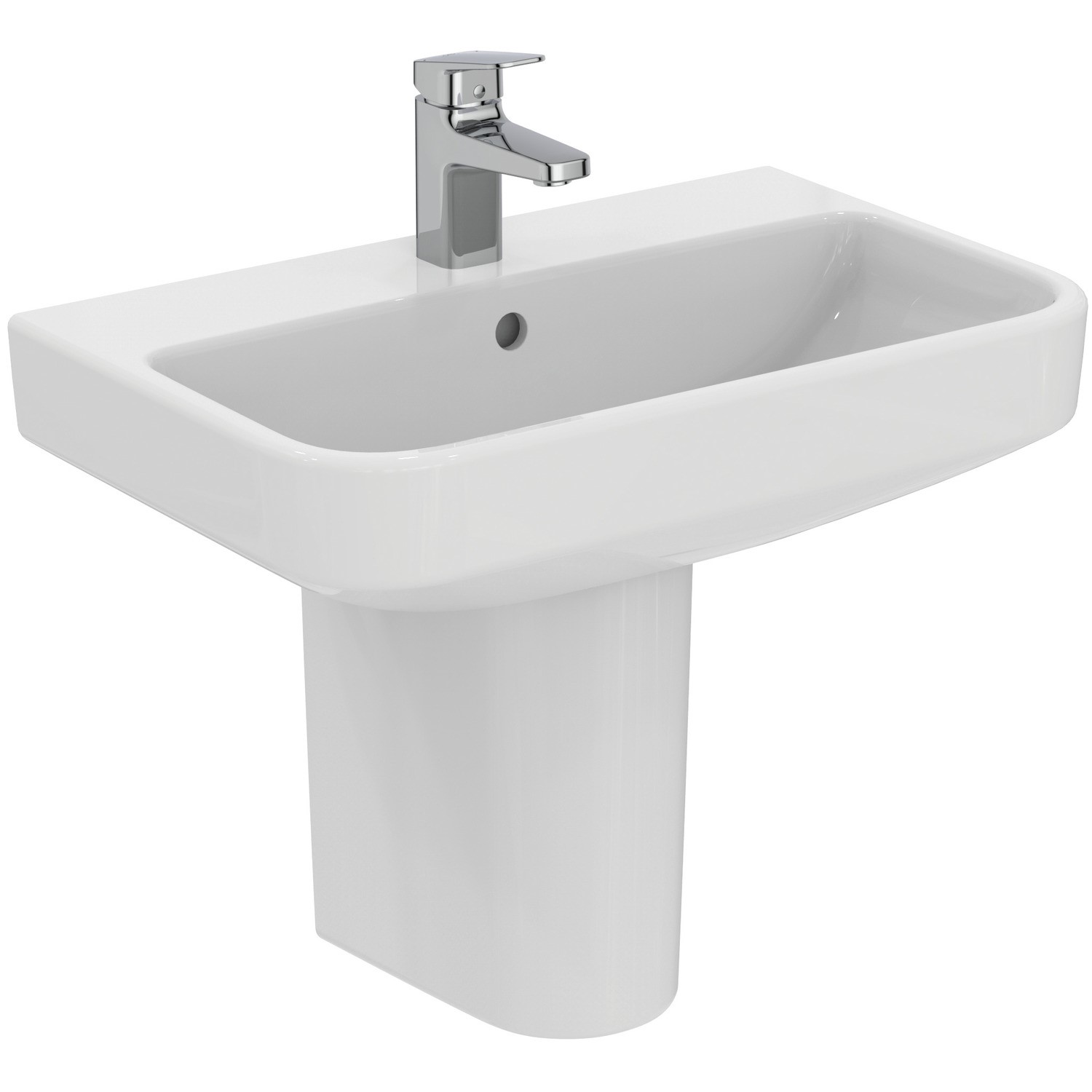 Enhance your bathroom with the i.Life S Compact 600mm Semi Pedestal Basin from Ideal Standard. Combining modern rectangular curves with a practical semi pedestal that conceals unsightly pipework whilst still giving the illusion of open floorspace, this space-saving sink is designed for both beauty and function. The basin design features a shorter 380mm depth making this sink perfect for compact or smaller spaces, such as cloakrooms or en-suites. Featuring one central tap hole, it's ideal for a mono basin mixer tap of your choice. The overflow is coverless meaning you can pair this basin with brassware in any finish. Crafted from high-quality ceramic and finished with a glossy enamel coating, it’s built to stand the test of time while adding a fresh, contemporary touch to your bathroom, is easy to clean and maintain whilst being backed with Ideal Standard's lifetime guarantee for peace of mind.